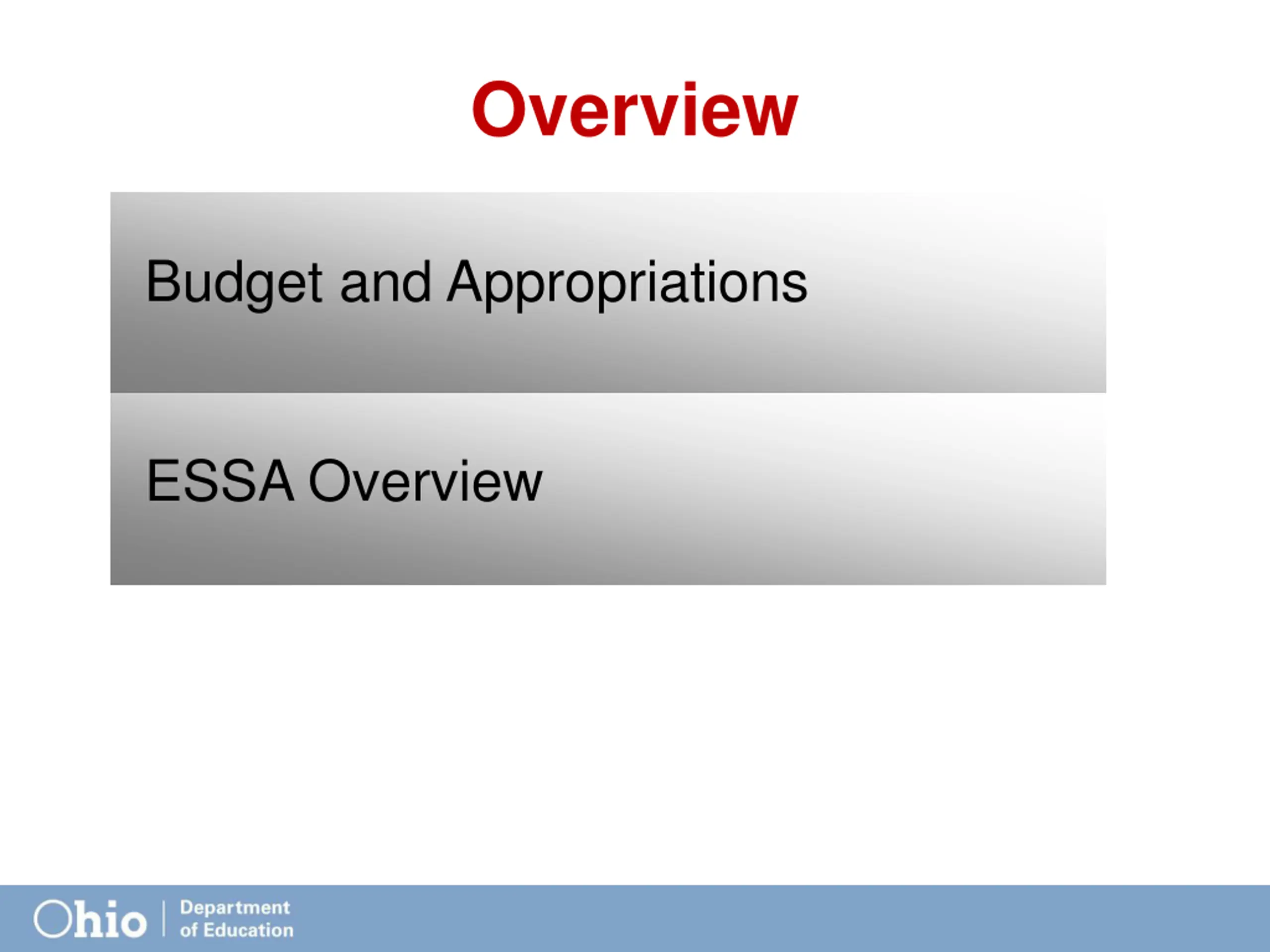 Overview Budget and Appropriations ESSA Overview