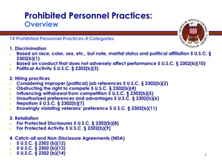 Whistleblower Protection Act (WPA) Generally provides protection to federal employees who make disclosures evidencing illegal or improper government activities Need to look at statute since some employees are not covered by its provisions Employees may raise protections in an employee appeal to the Merit Systems Protection Board (MSPB) or an action instituted by the Office of Special Counsel (OSC) or through an individual action