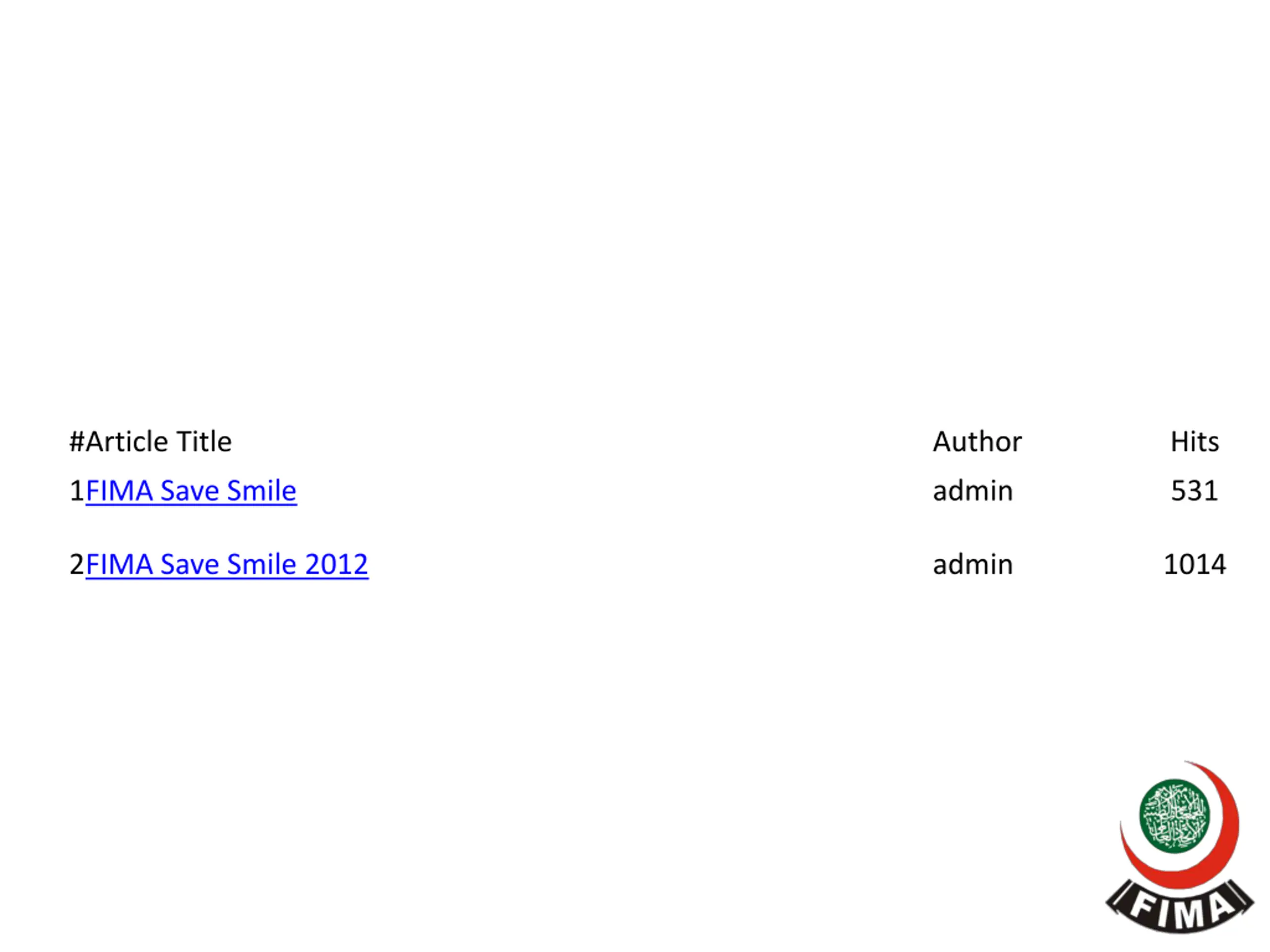 # Article Title Author Hits 1 FIMA Save Smile admin 531 2 FIMA Save Smile 2012 admin 1014