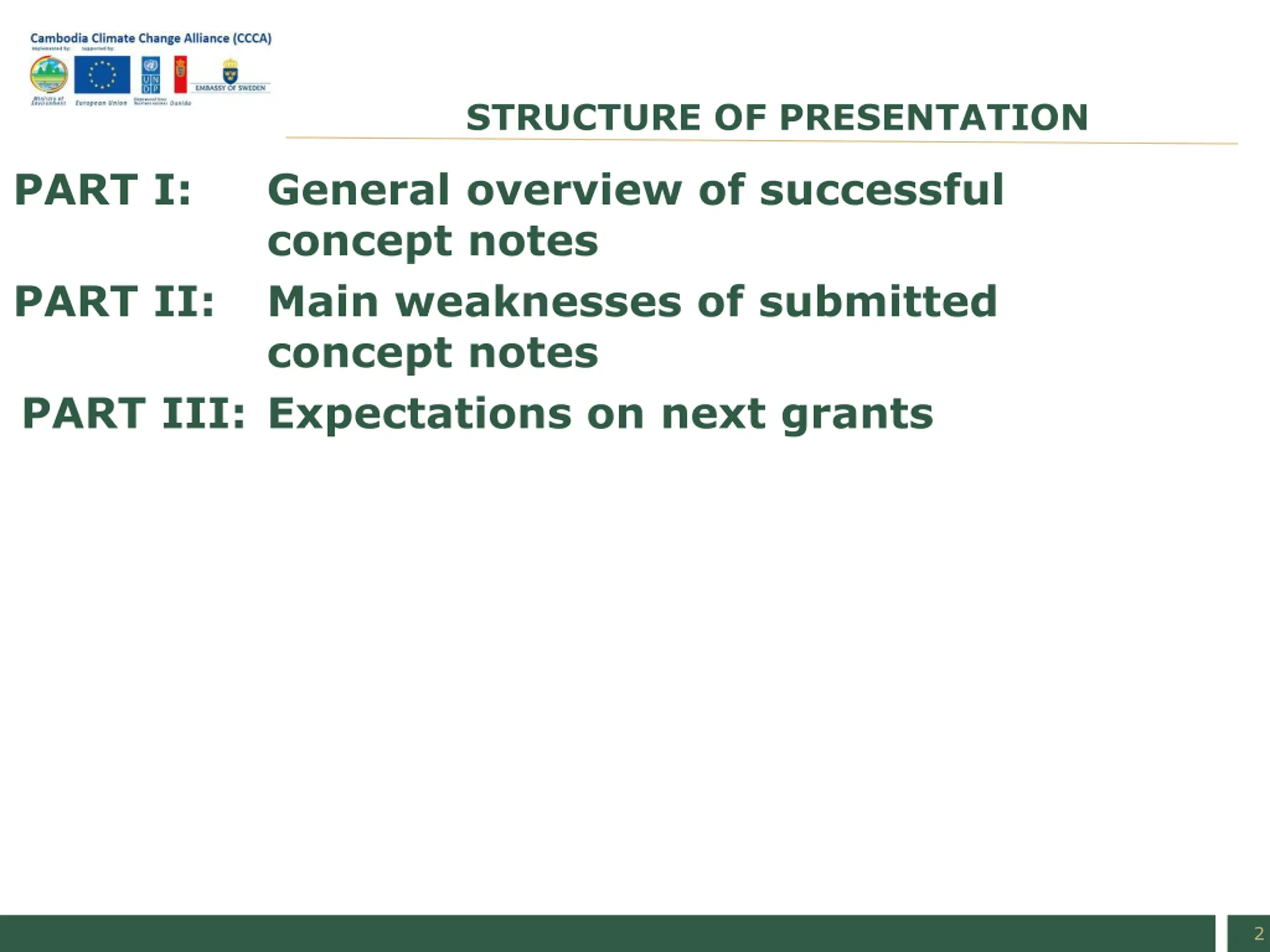STRUCTURE OF PRESENTATION PART I: General overview of successful concept notes Main weaknesses of submitted concept notes PART III: Expectations on next grants PART II: 2