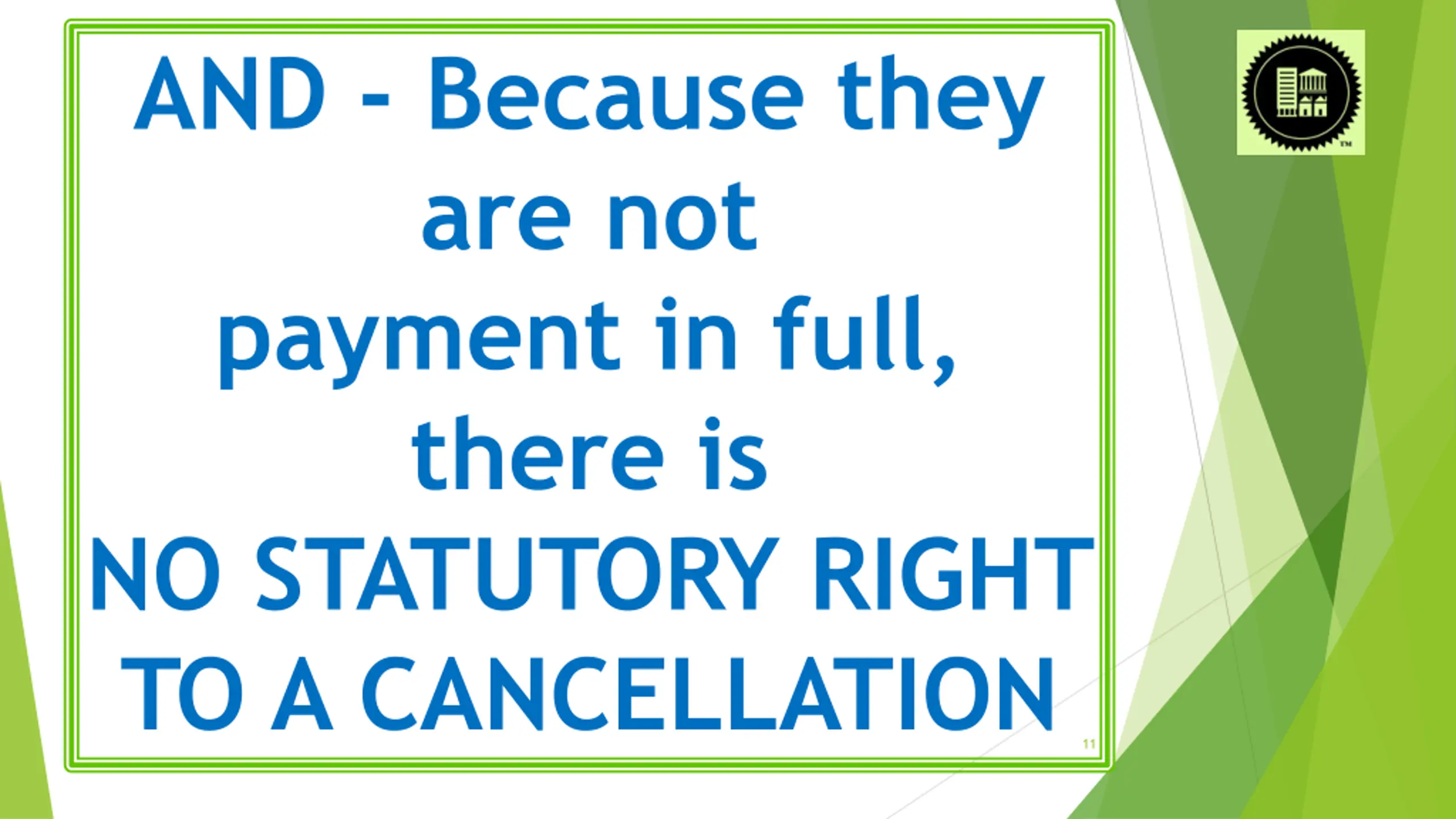 AND - Because they are not payment in full, there is NO STATUTORY RIGHT TO A CANCELLATION 11