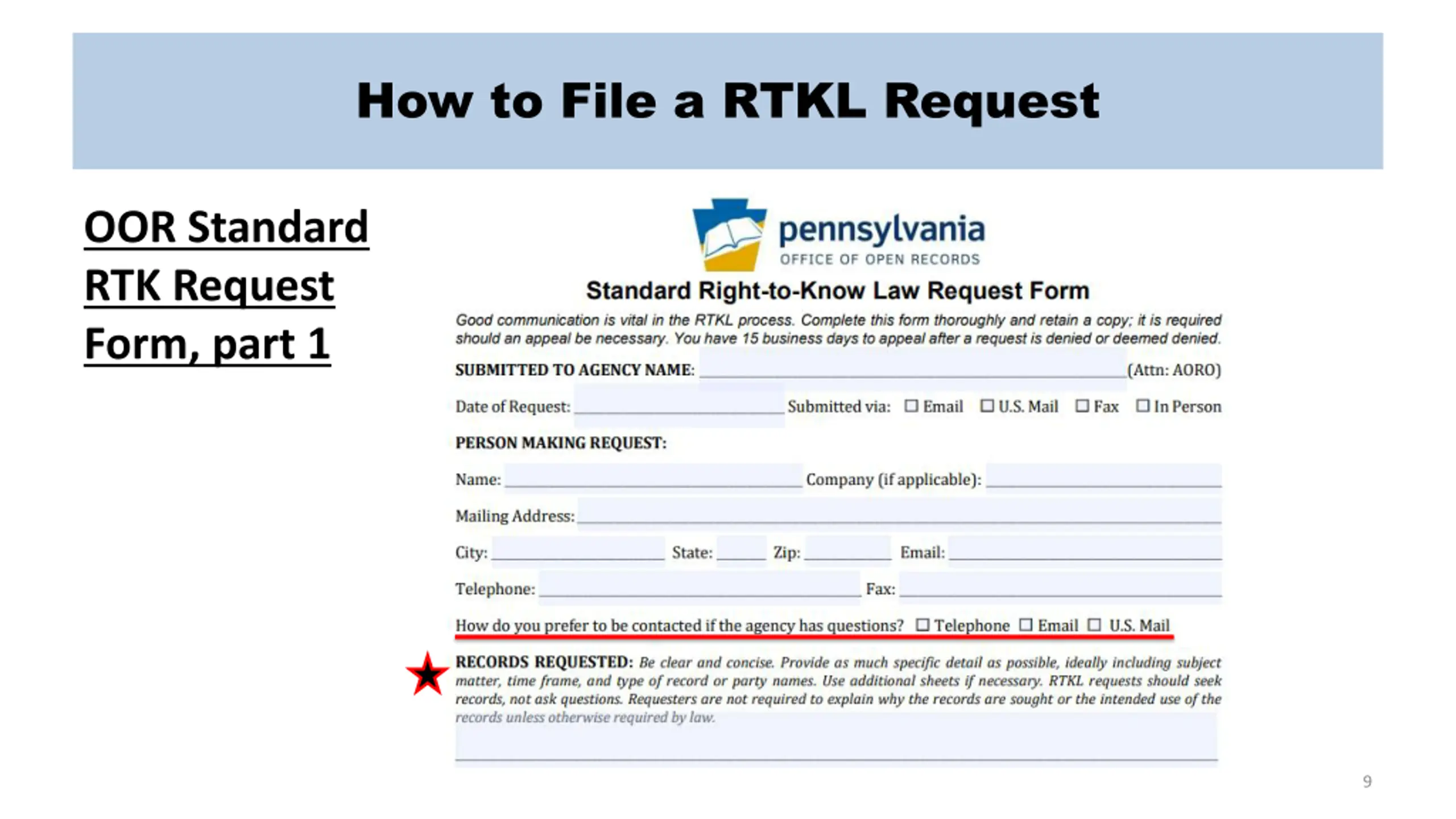 How to File a RTKL Request OOR Standard RTK Request Form, part 1 9