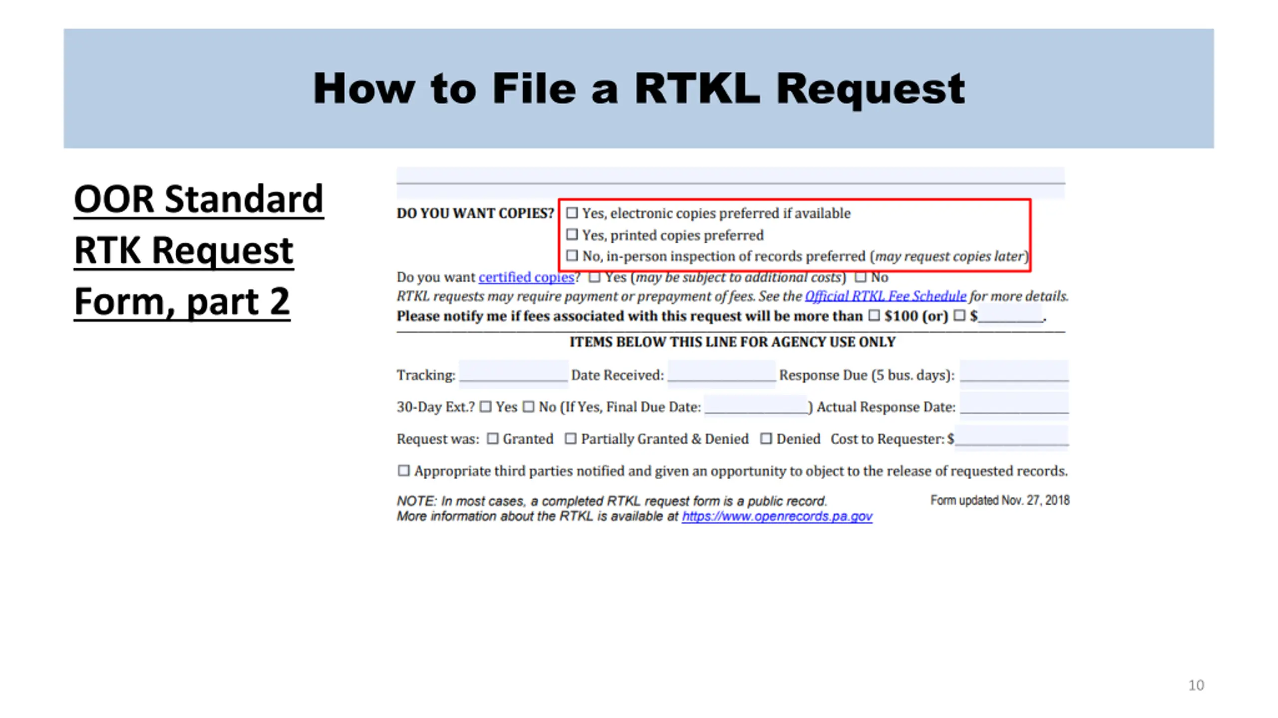 How to File a RTKL Request OOR Standard RTK Request Form, part 2 10
