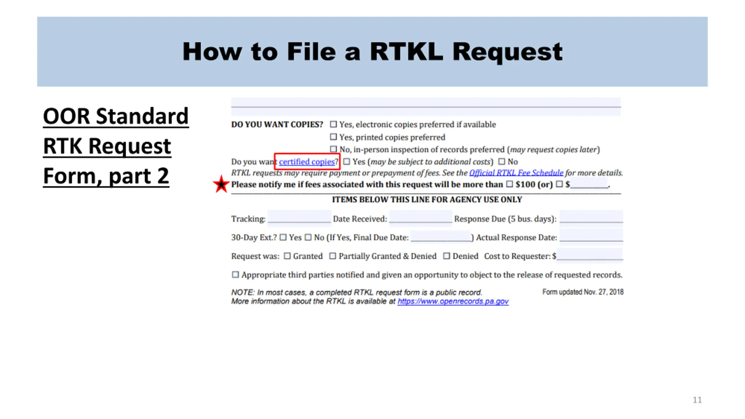 How to File a RTKL Request OOR Standard RTK Request Form, part 2 11