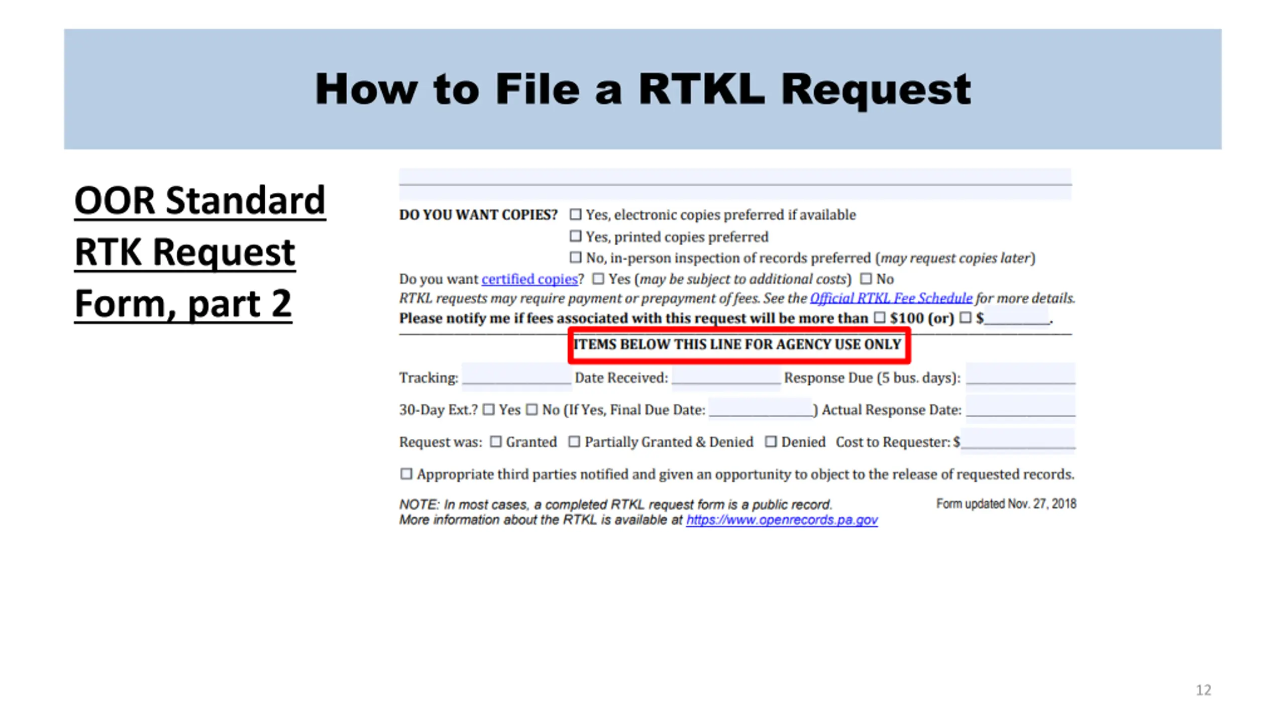 How to File a RTKL Request OOR Standard RTK Request Form, part 2 12