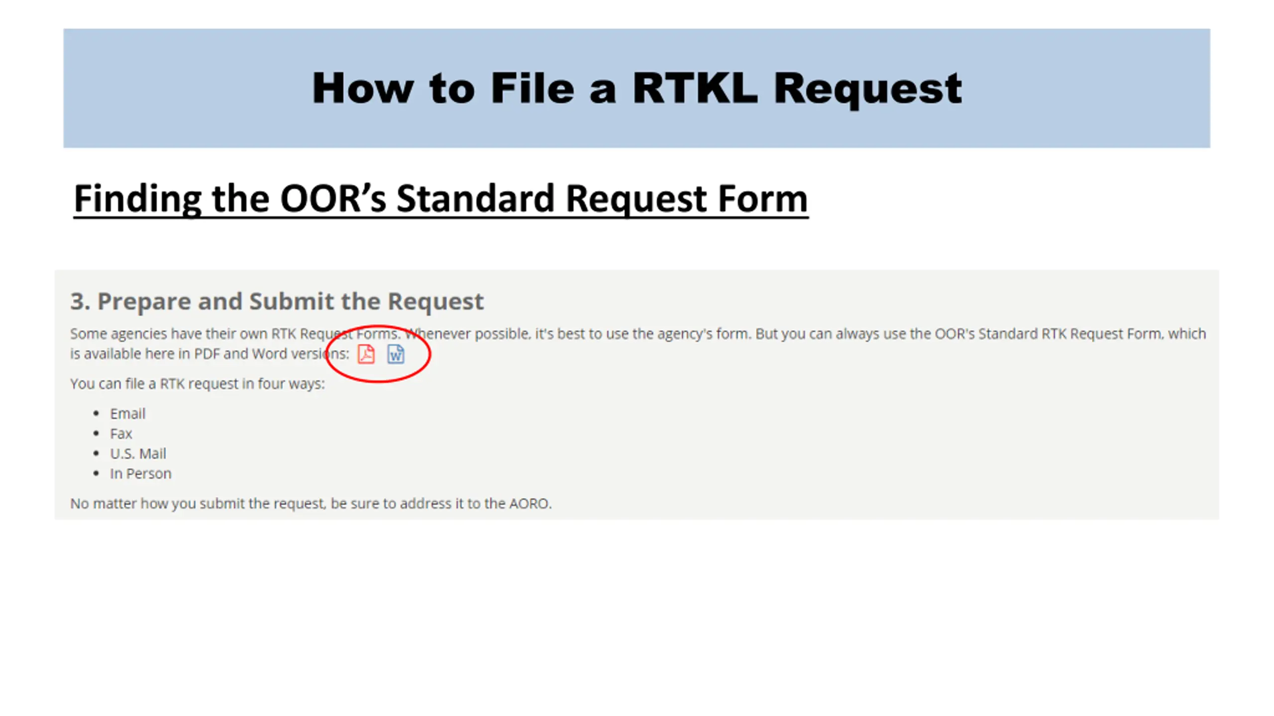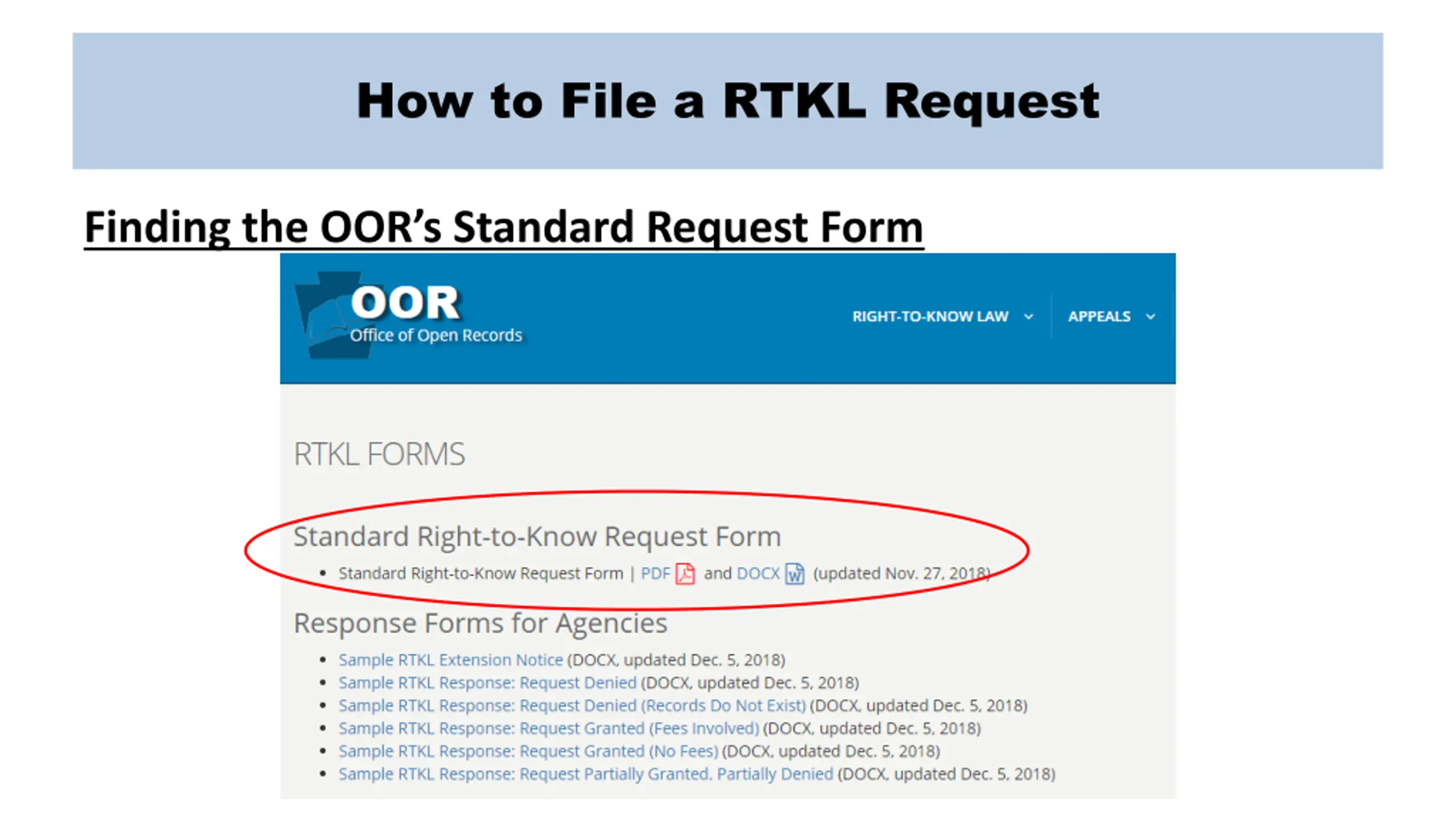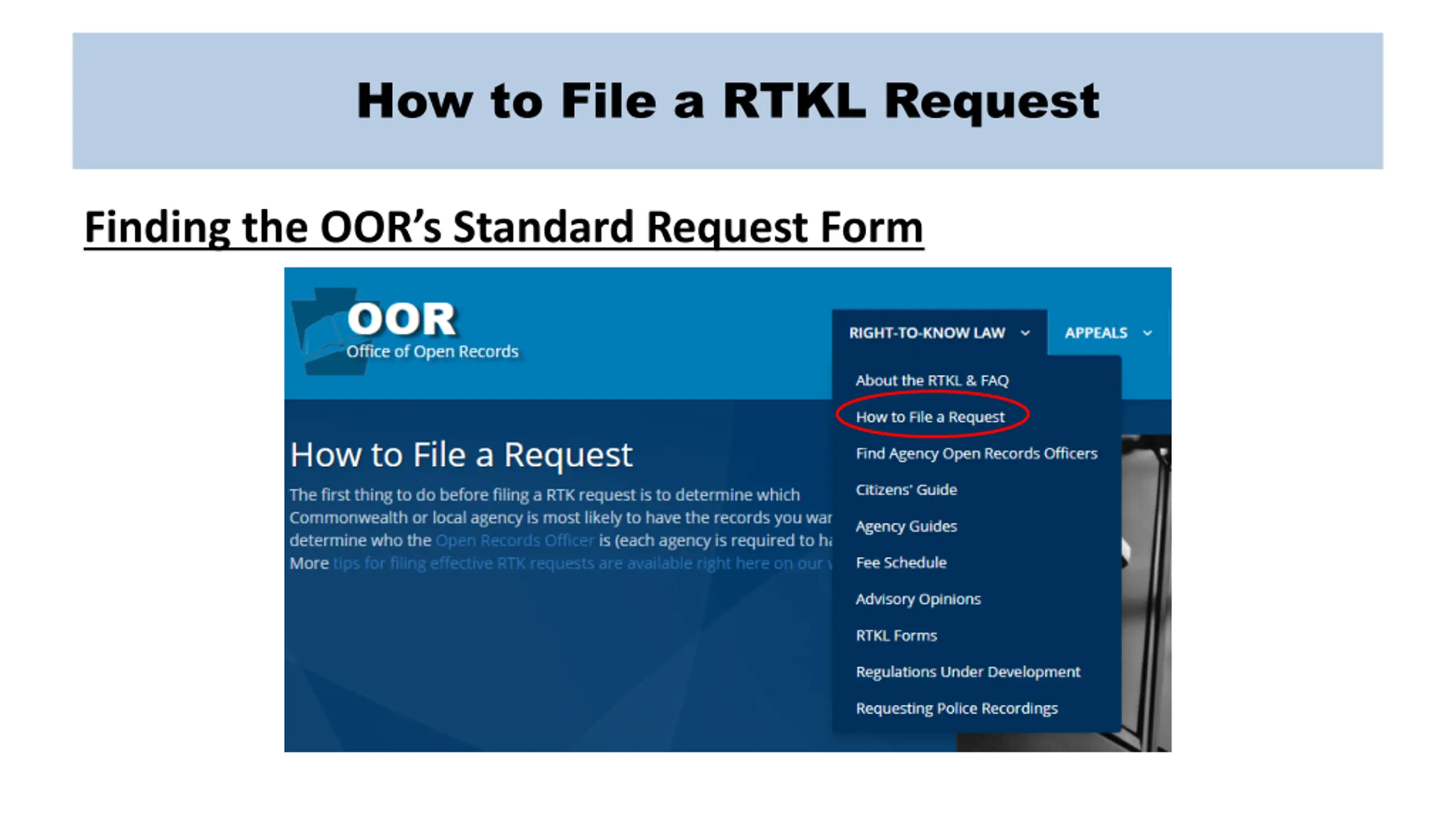 How to File a RTKL Request Finding the OOR s Standard Request Form