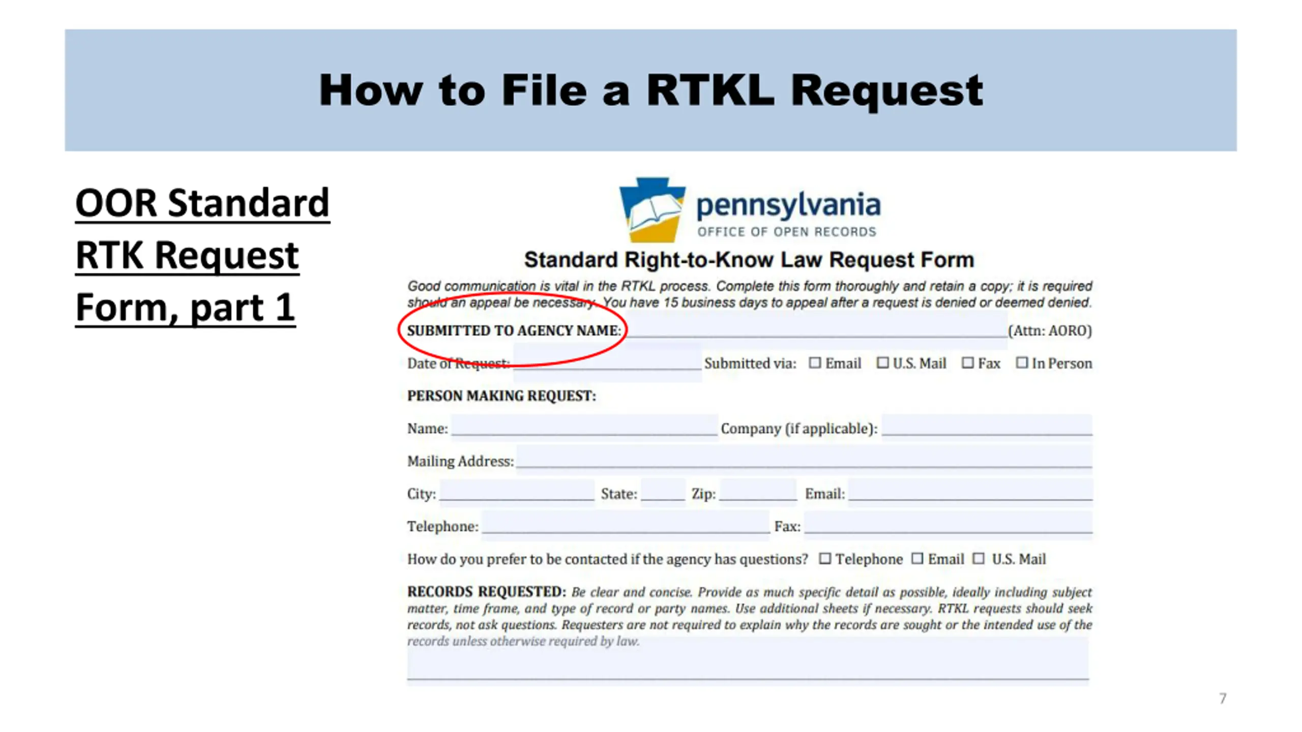How to File a RTKL Request OOR Standard RTK Request Form, part 1 7