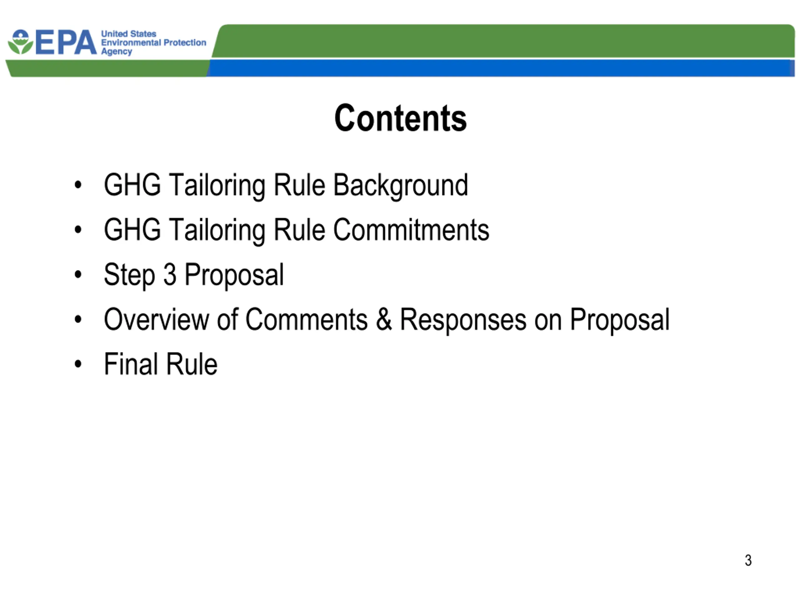 Contents GHG Tailoring Rule Background GHG Tailoring Rule Commitments Step 3 Proposal Overview of Comments & Responses on Proposal Final Rule 3