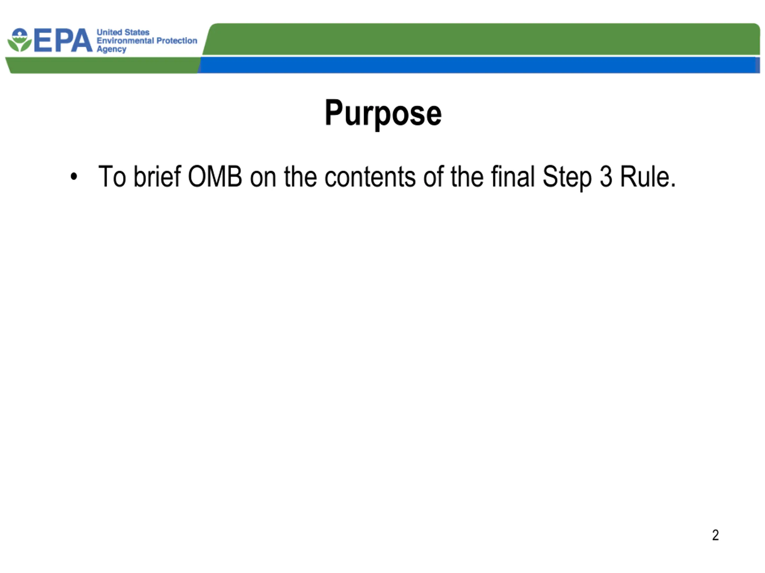 Purpose To brief OMB on the contents of the final Step 3 Rule. 2