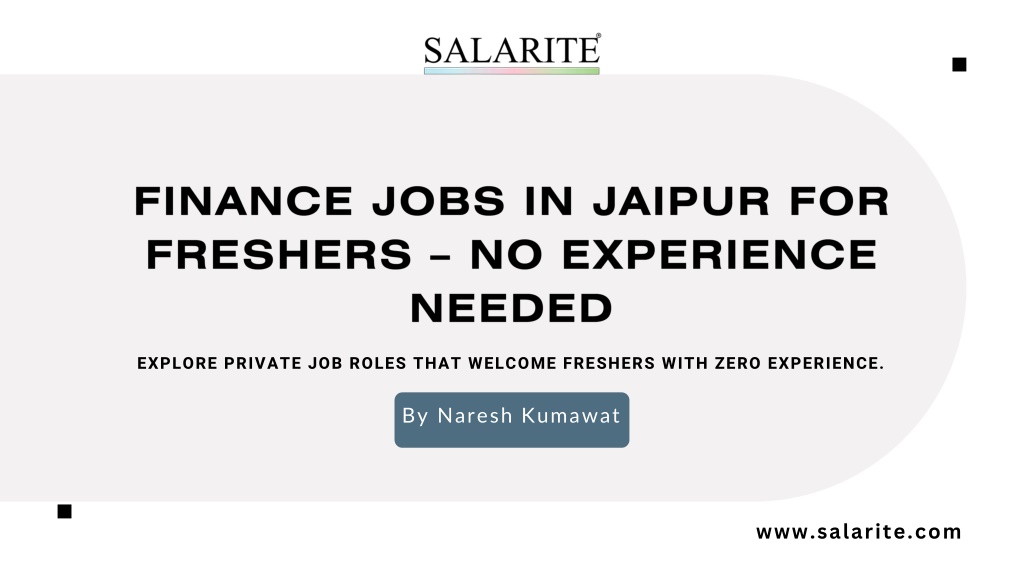 Discover exciting finance jobs in Jaipur for freshersu2014no experience required! This presentation highlights top entry-level roles, must-have skills, career growth, and how to apply. Perfect for fresh graduates ready to launch their finance career