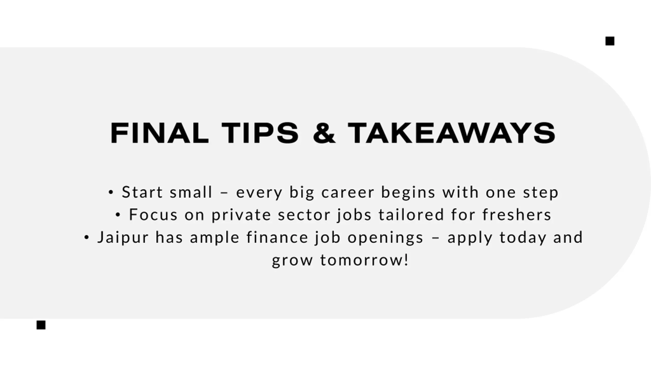 Start small every big career begins with one step Focus on private sector jobs tailored for freshers Jaipur has ample finance job openings apply today and grow tomorrow!