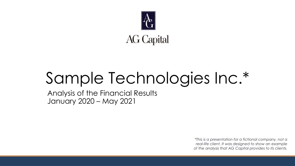 Sample Technologies Inc.* Analysis of the Financial Results January 2020 May 2021 *This is a presentation for a fictional company, not a real-life client. It was designed to show an example of the analysis that AG Capital provides to its clients.