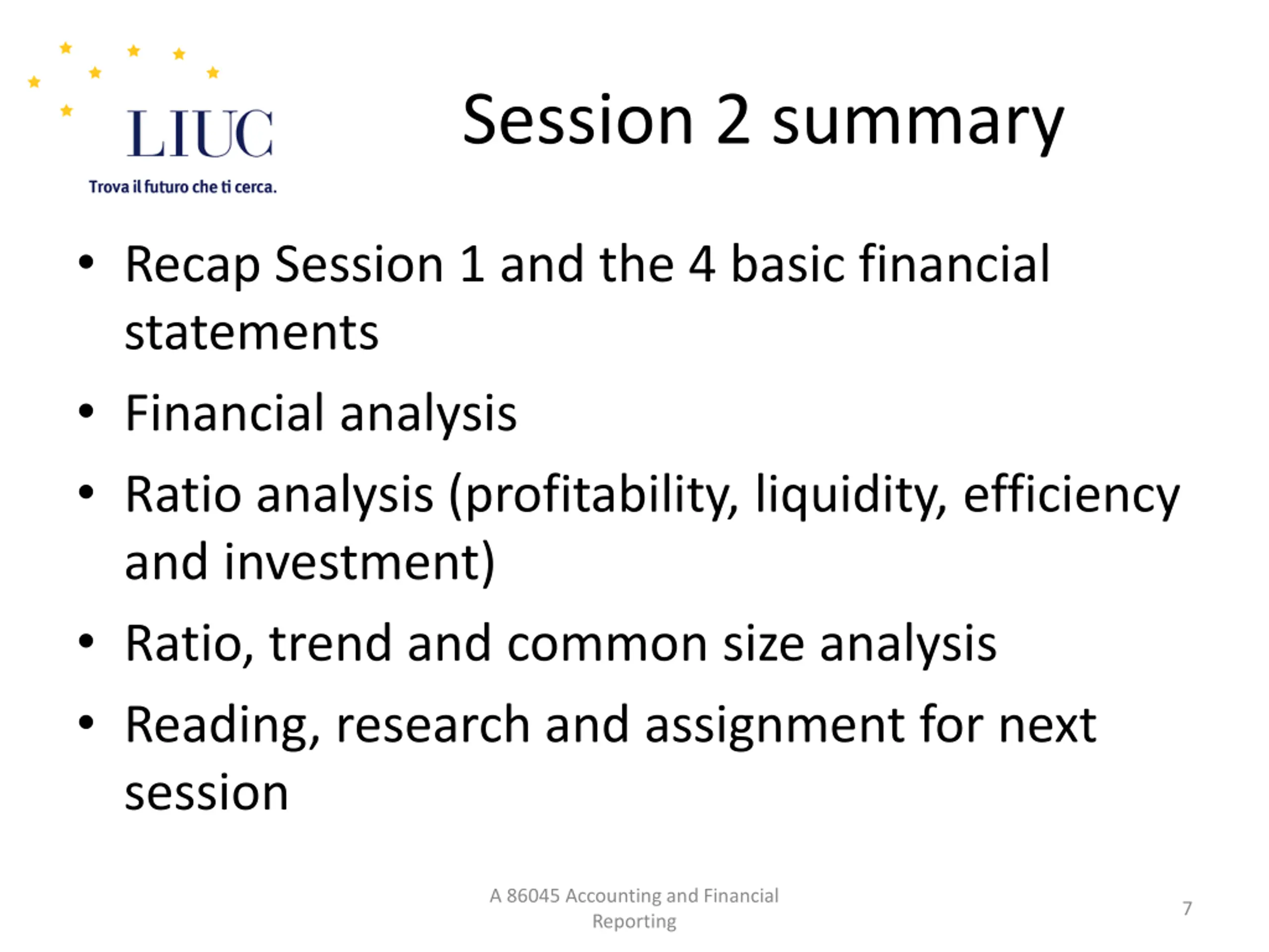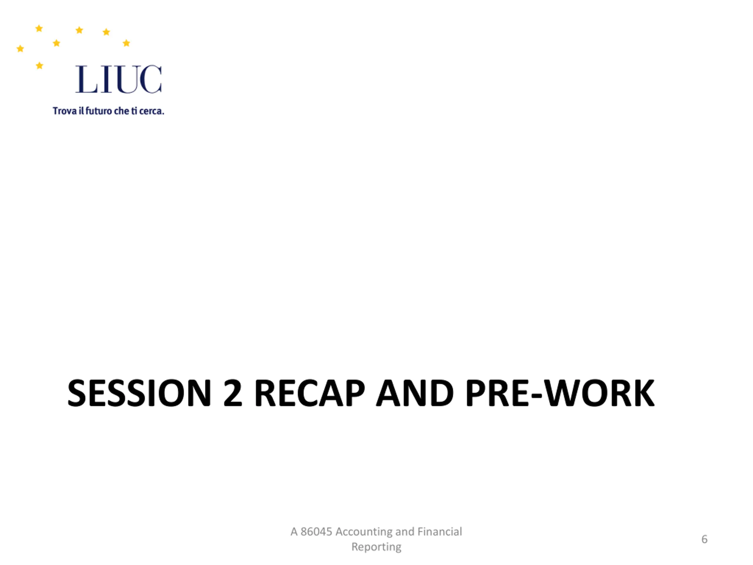 SESSION 2 RECAP AND PRE-WORK A 86045 Accounting and Financial Reporting 6