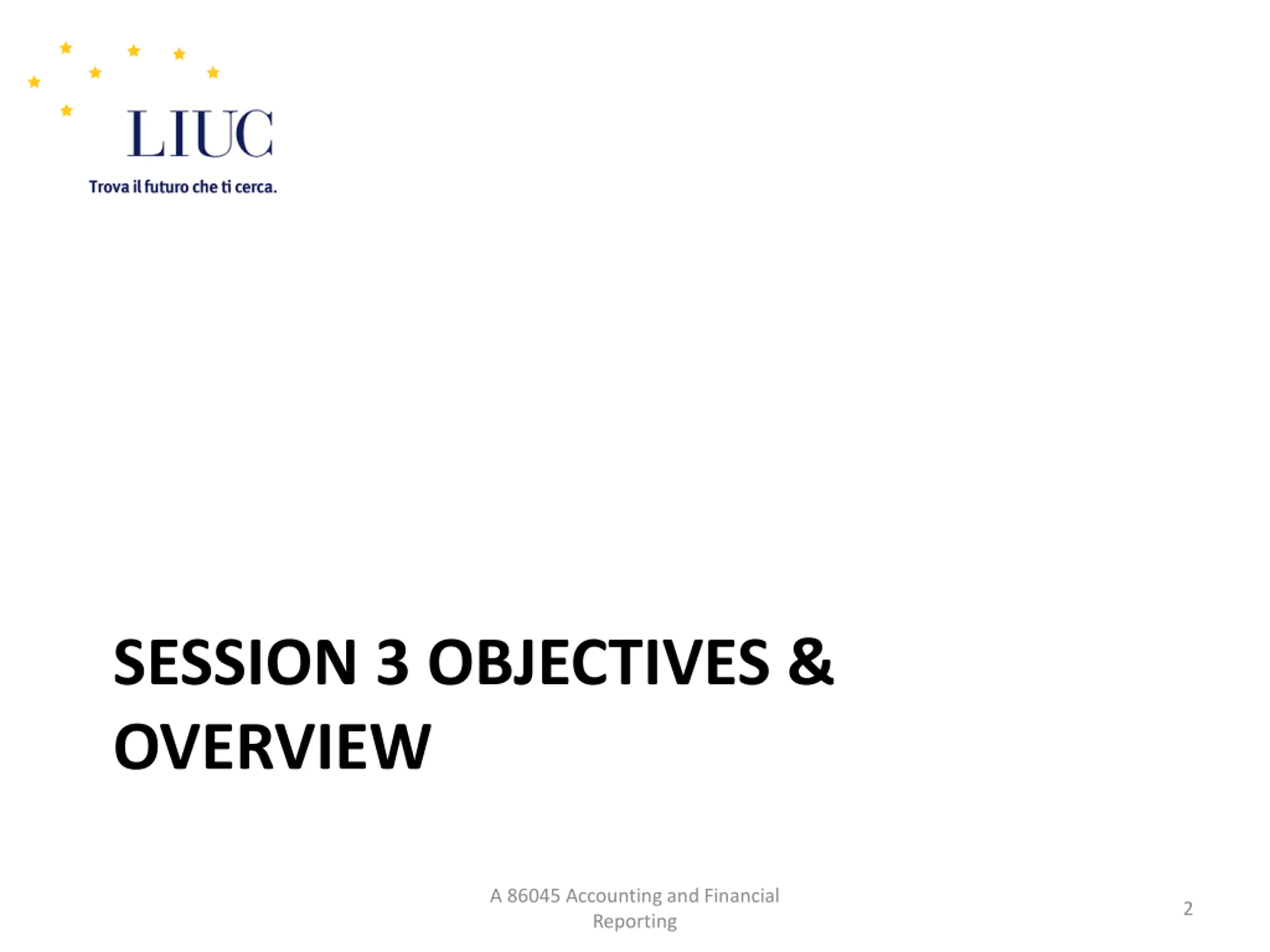 SESSION 3 OBJECTIVES & OVERVIEW A 86045 Accounting and Financial Reporting 2