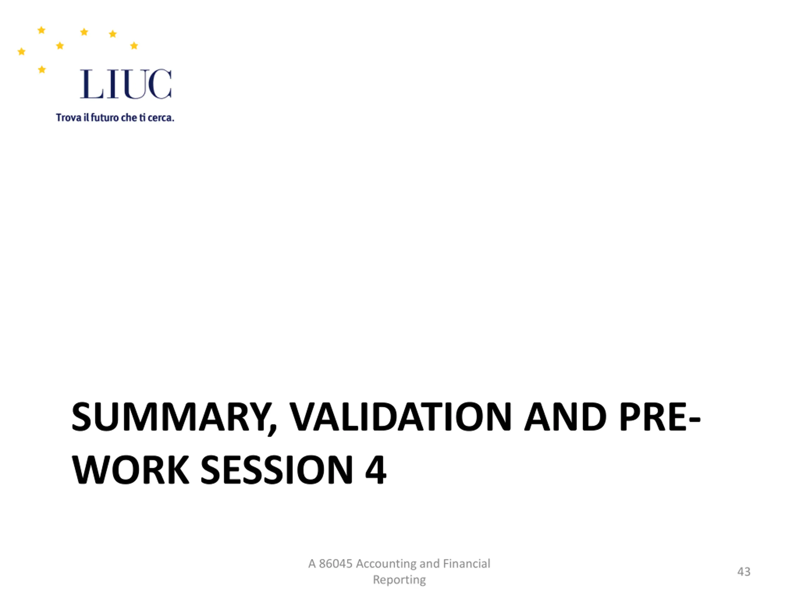 SUMMARY, VALIDATION AND PRE- WORK SESSION 4 A 86045 Accounting and Financial Reporting 43
