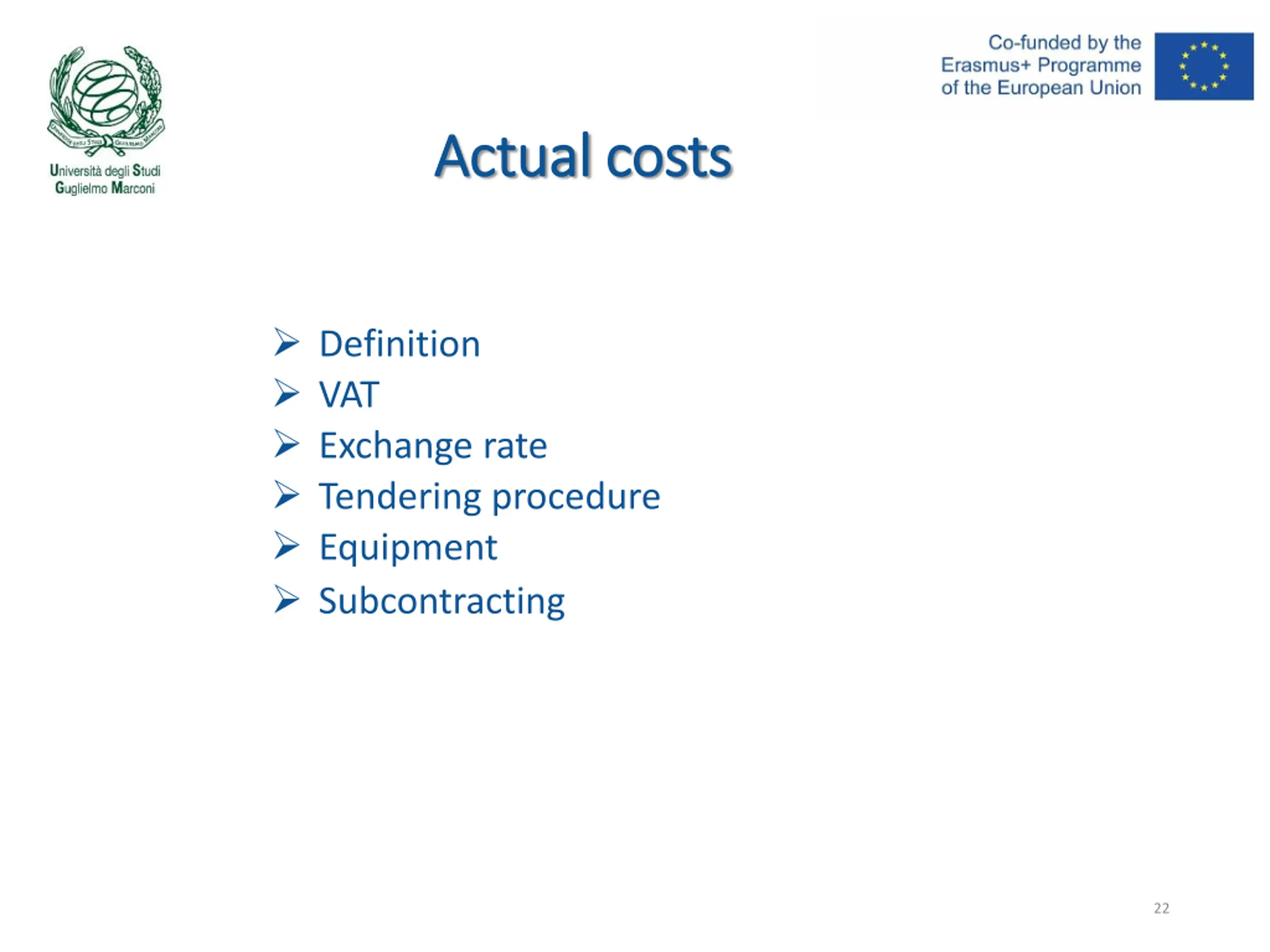 Actual Actual costs costs Definition VAT Exchange rate Tendering procedure Equipment Subcontracting 22