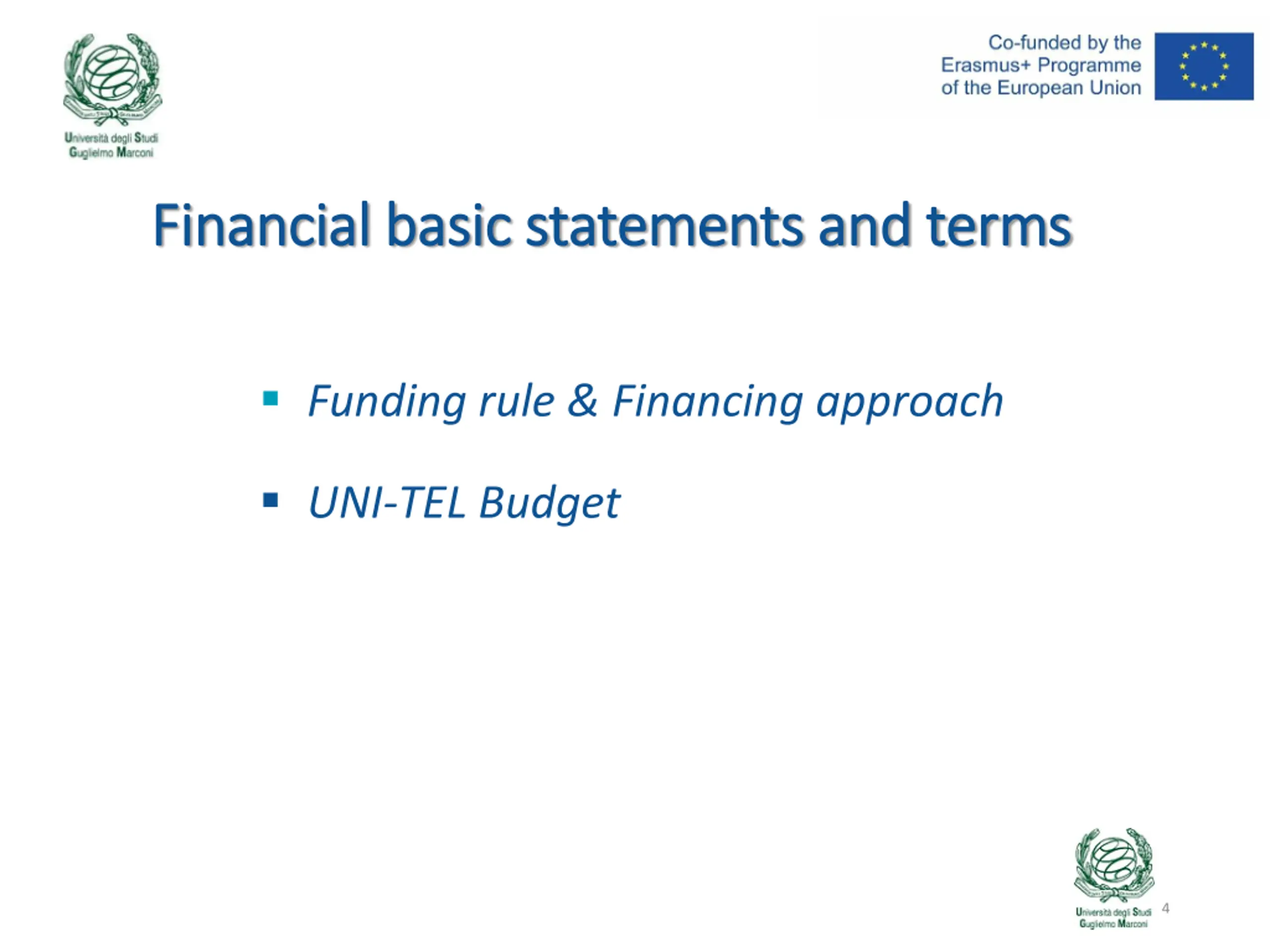 Financial basic statements and terms Financial basic statements and terms Funding rule & Financing approach UNI-TEL Budget 4