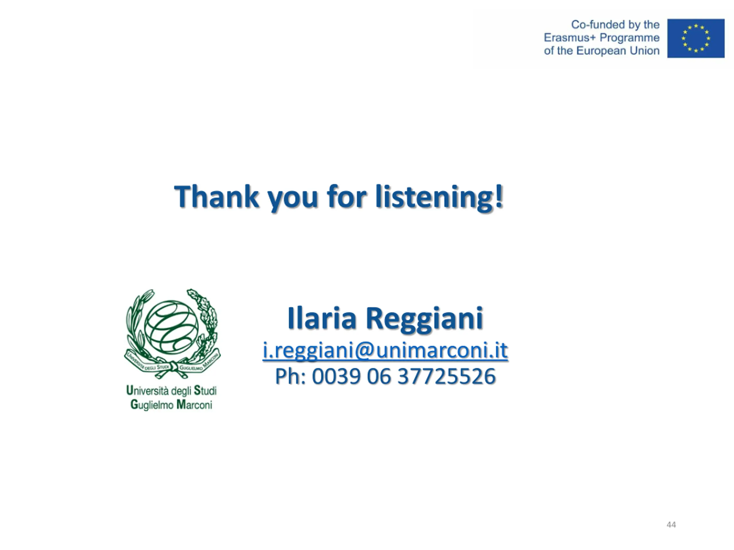 Thank you for listening! Ilaria Reggiani i.reggiani@unimarconi.it Ph: 0039 06 37725526 44