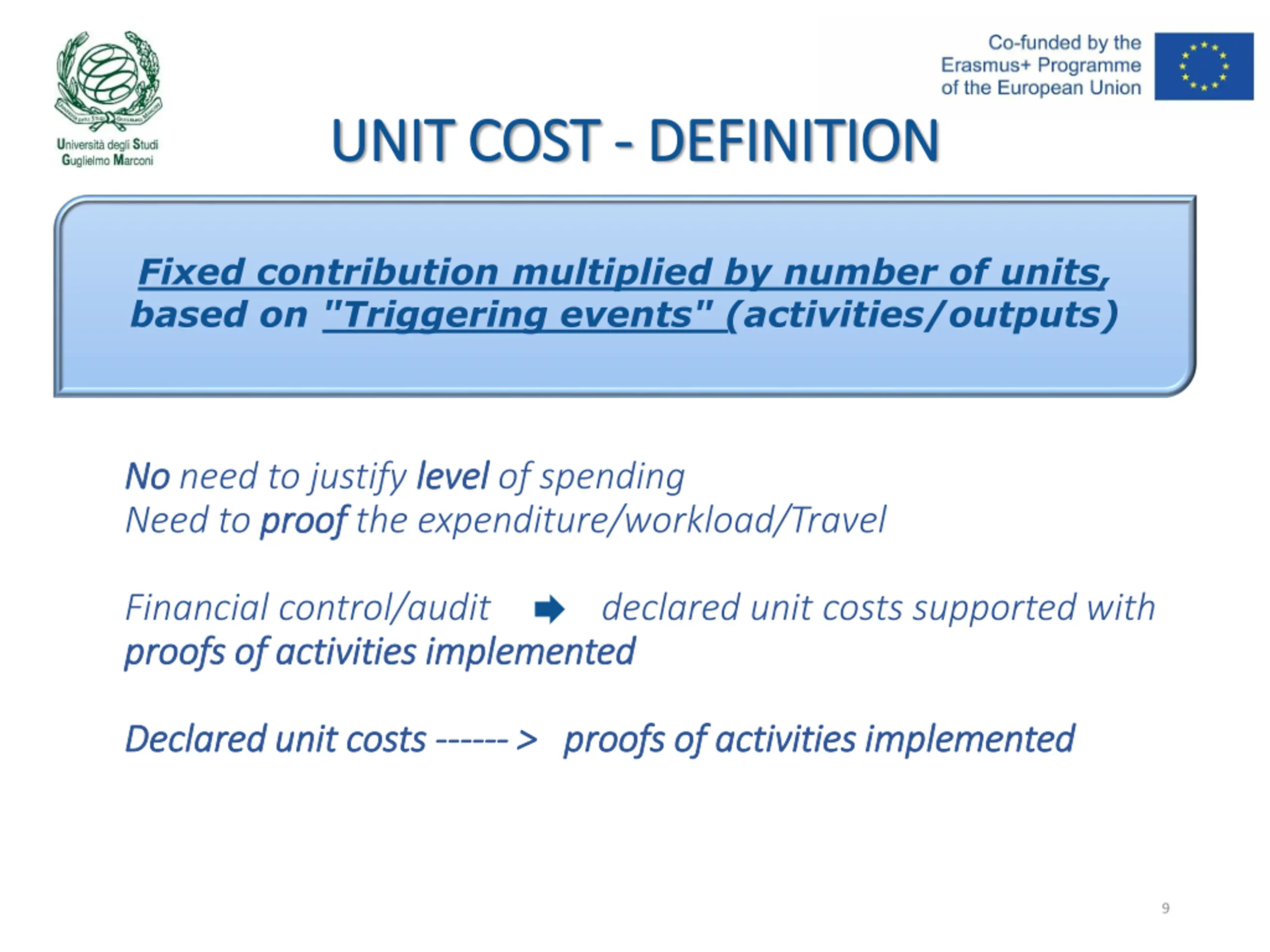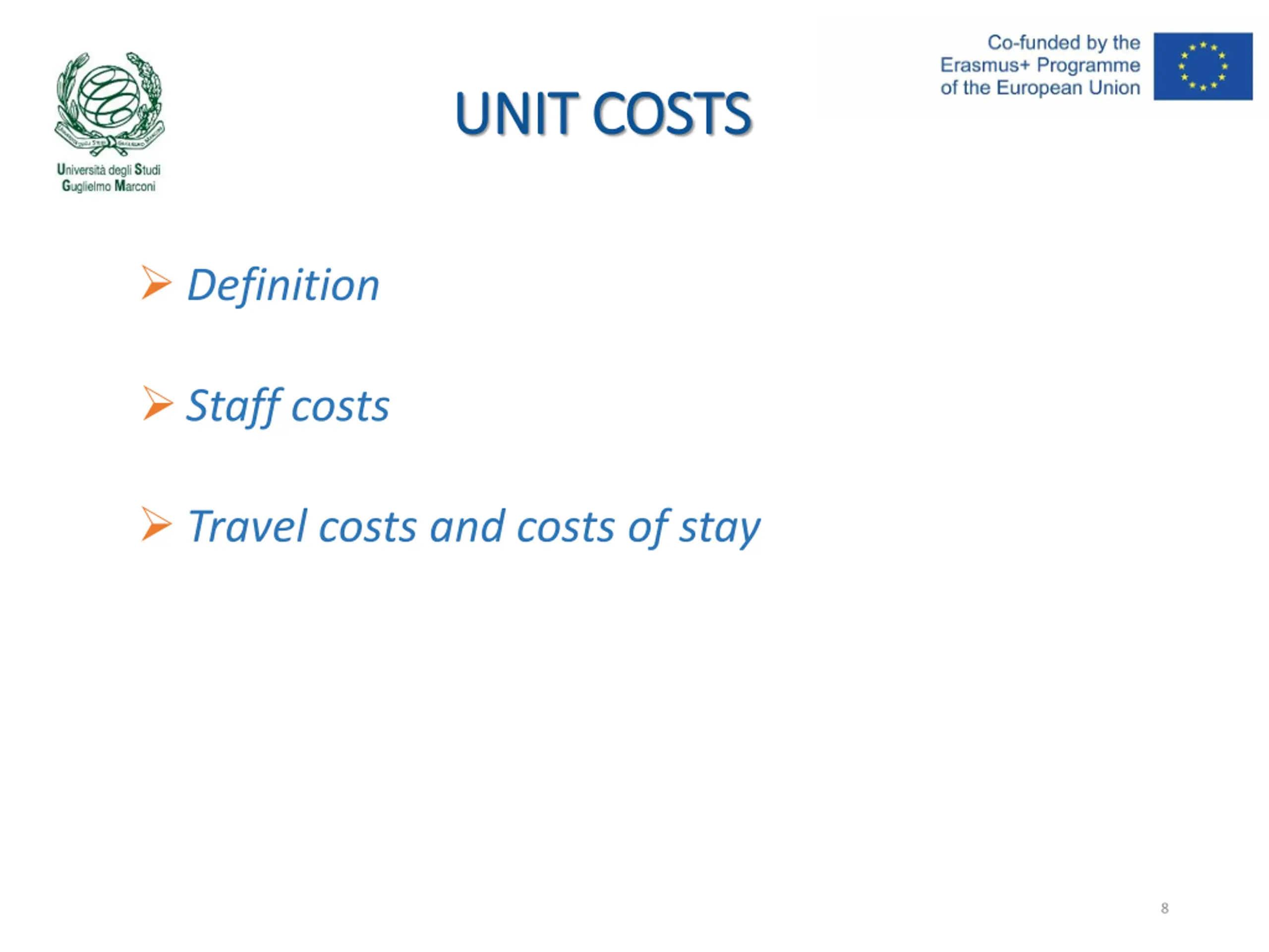 UNIT COSTS UNIT COSTS Definition Staff costs Travel costs and costs of stay 8
