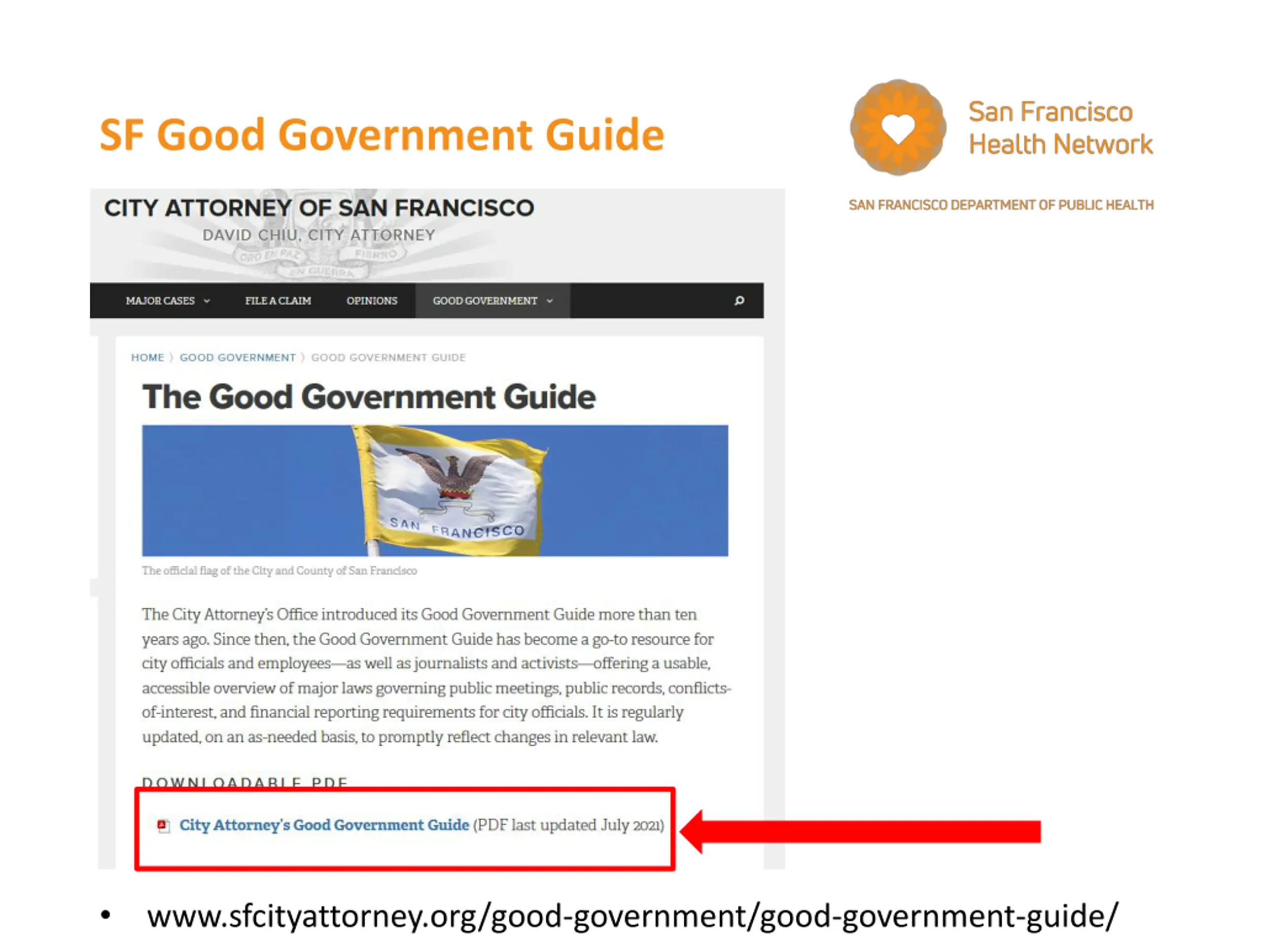 SF Good Government Guide www.sfcityattorney.org/good-government/good-government-guide/