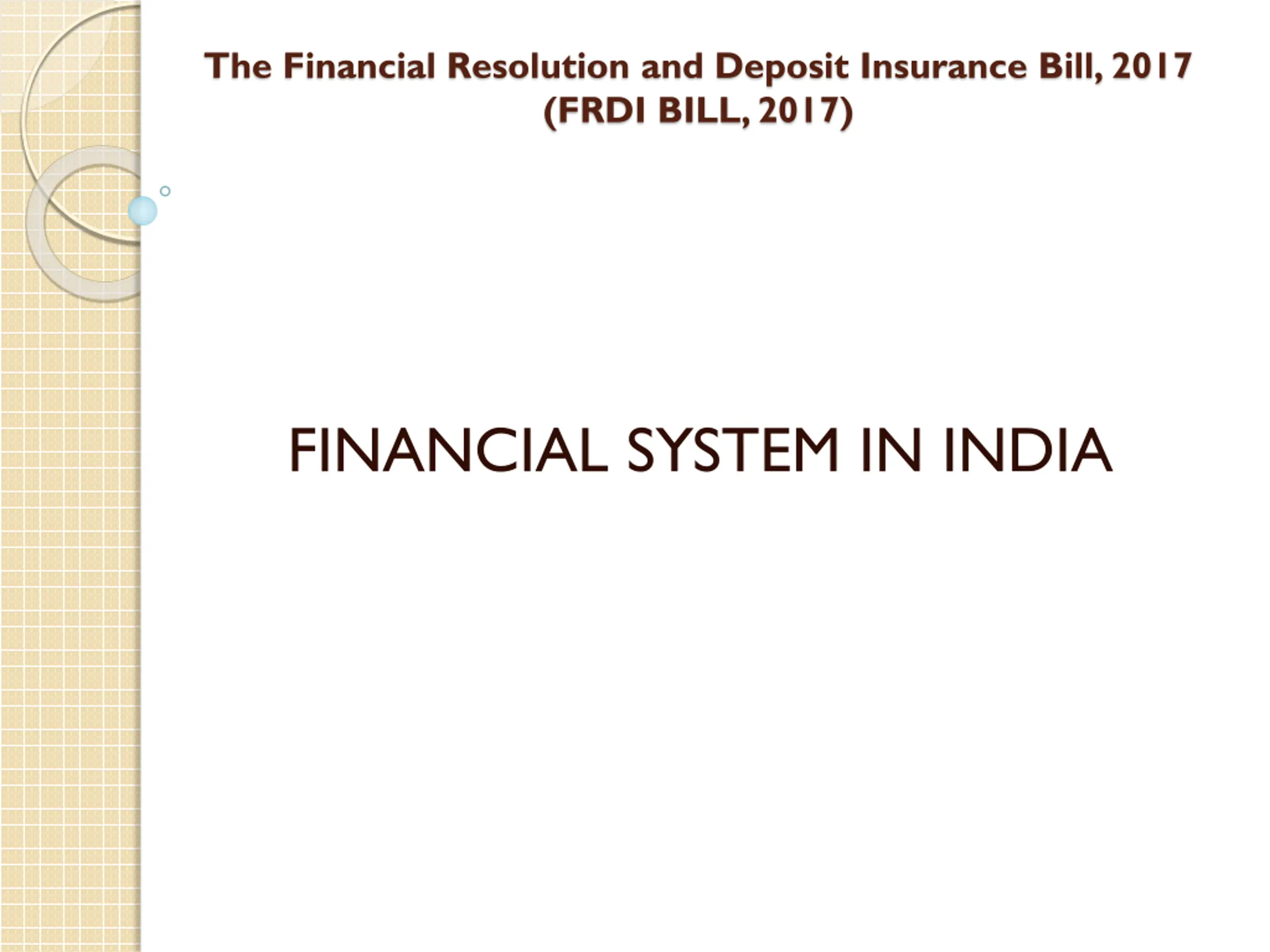 The Financial Resolution and Deposit Insurance Bill, 2017 (FRDI BILL, 2017) FINANCIAL SYSTEM IN INDIA