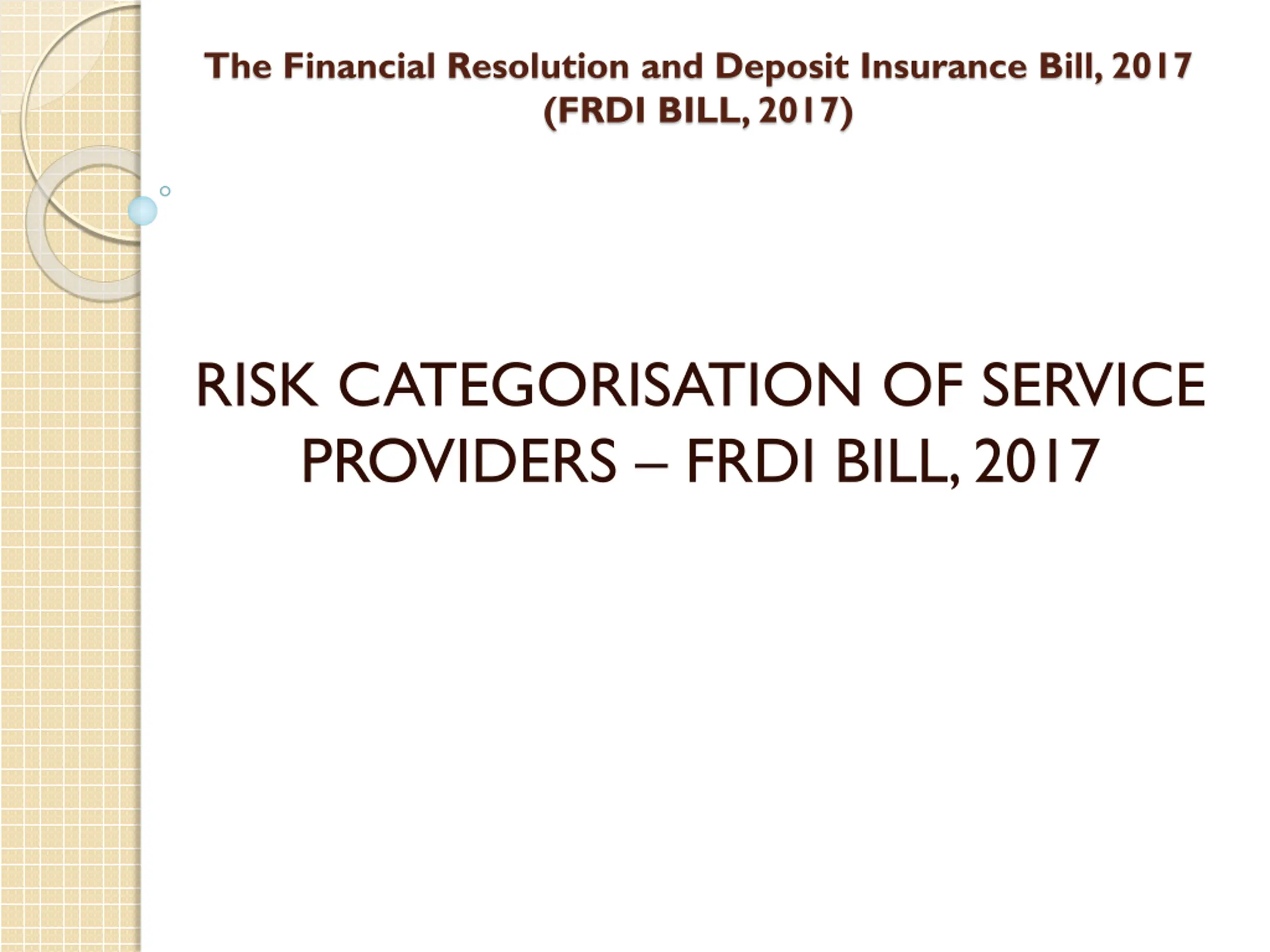 The Financial Resolution and Deposit Insurance Bill, 2017 (FRDI BILL, 2017) RISK CATEGORISATION OF SERVICE PROVIDERS FRDI BILL, 2017
