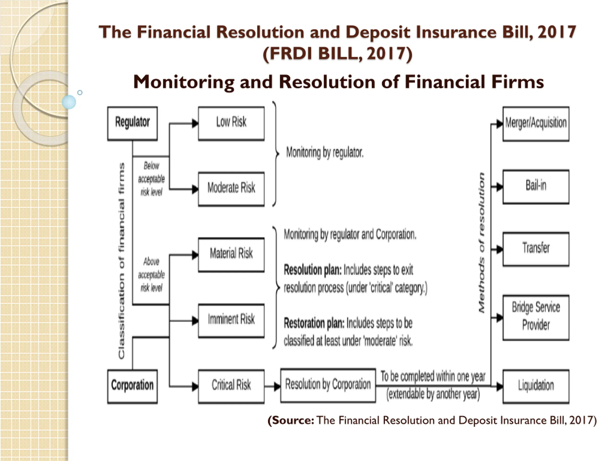 The Financial Resolution and Deposit Insurance Bill, 2017 (FRDI BILL, 2017) Monitoring and Resolution of Financial Firms (Source: The Financial Resolution and Deposit Insurance Bill, 2017)