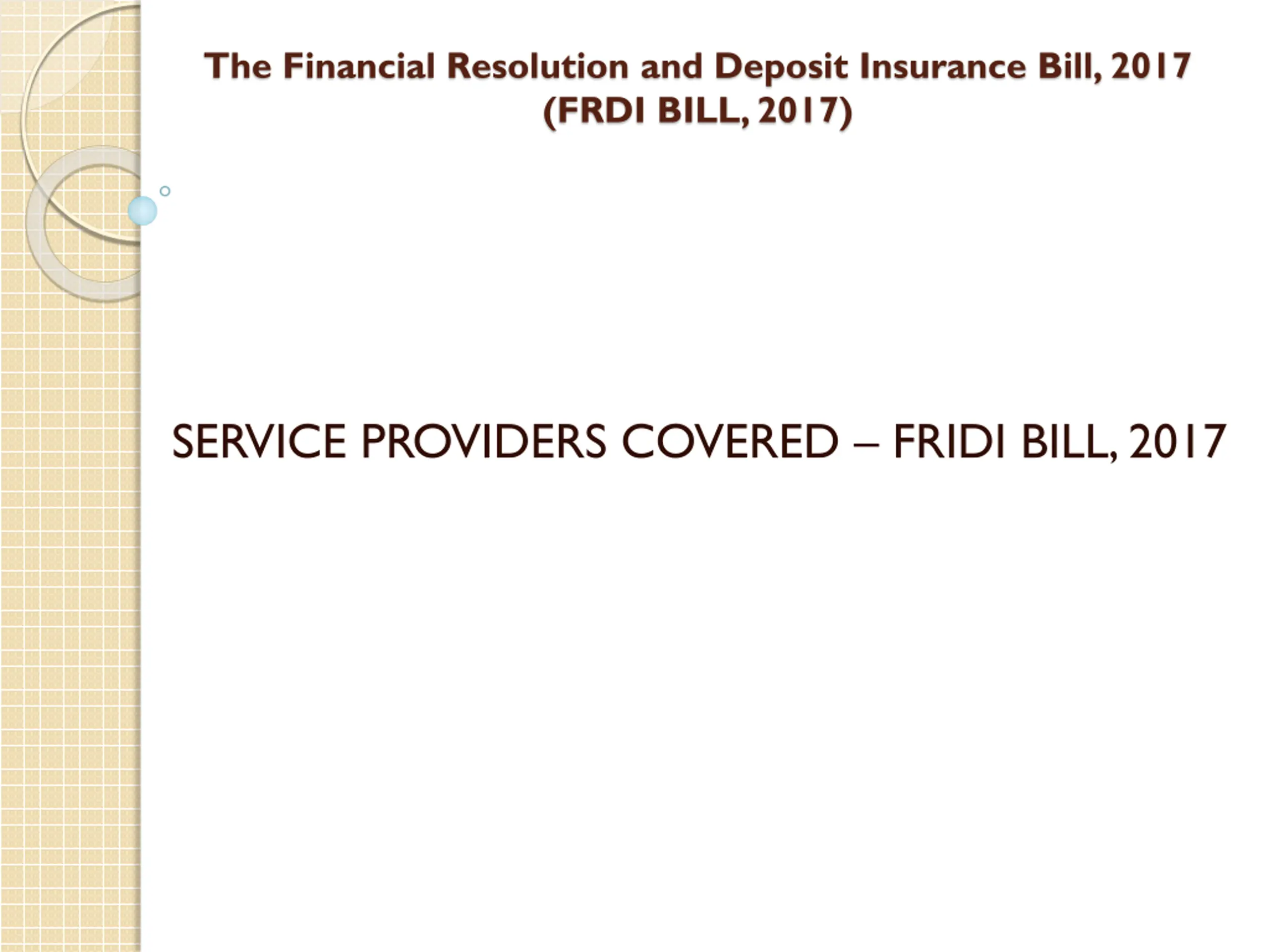 The Financial Resolution and Deposit Insurance Bill, 2017 (FRDI BILL, 2017) SERVICE PROVIDERS COVERED FRIDI BILL, 2017