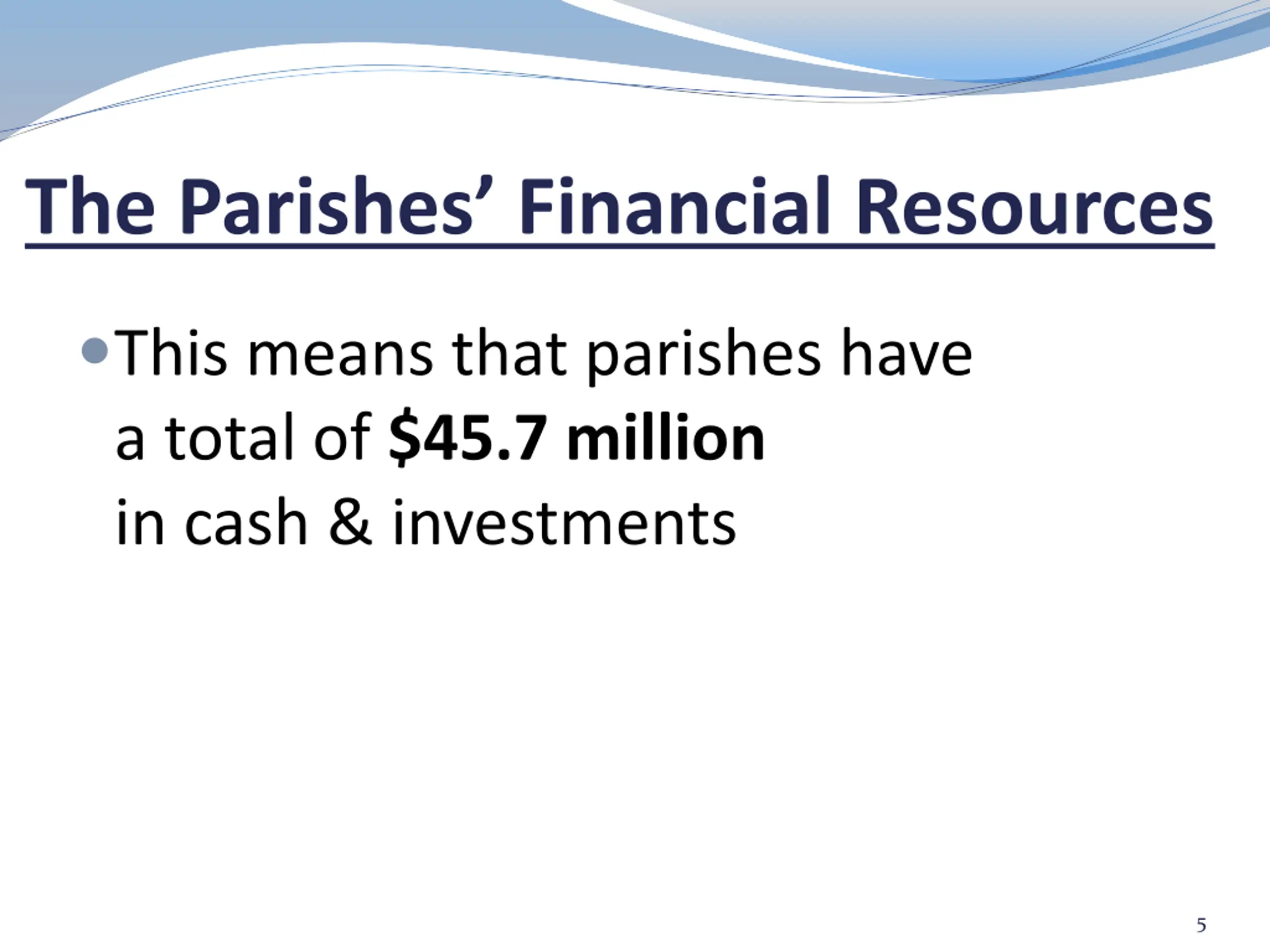 The Parishes Financial Resources This means that parishes have a total of $45.7 million in cash & investments 5