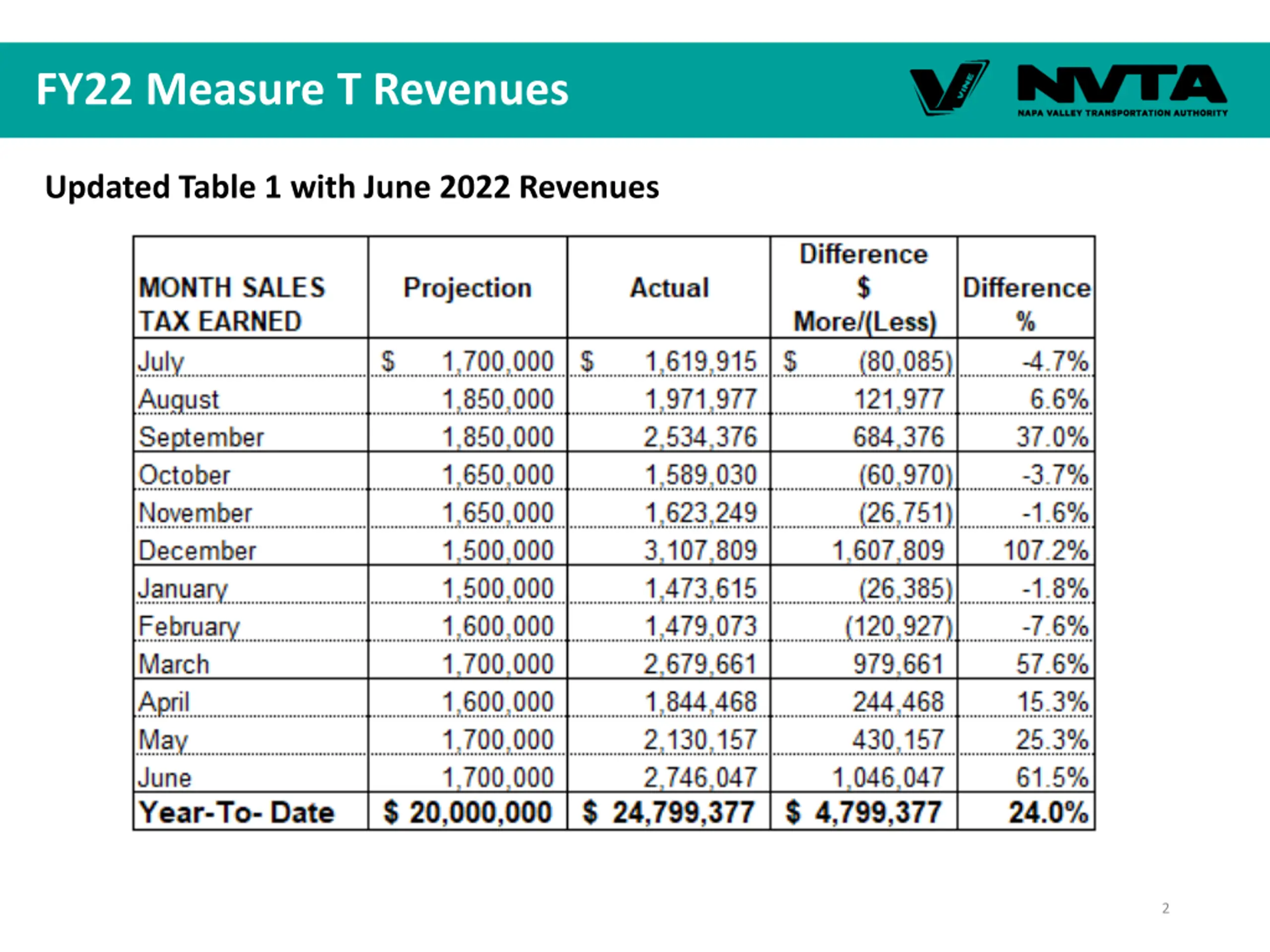 FY22 Measure T Revenues Updated Table 1 with June 2022 Revenues 2