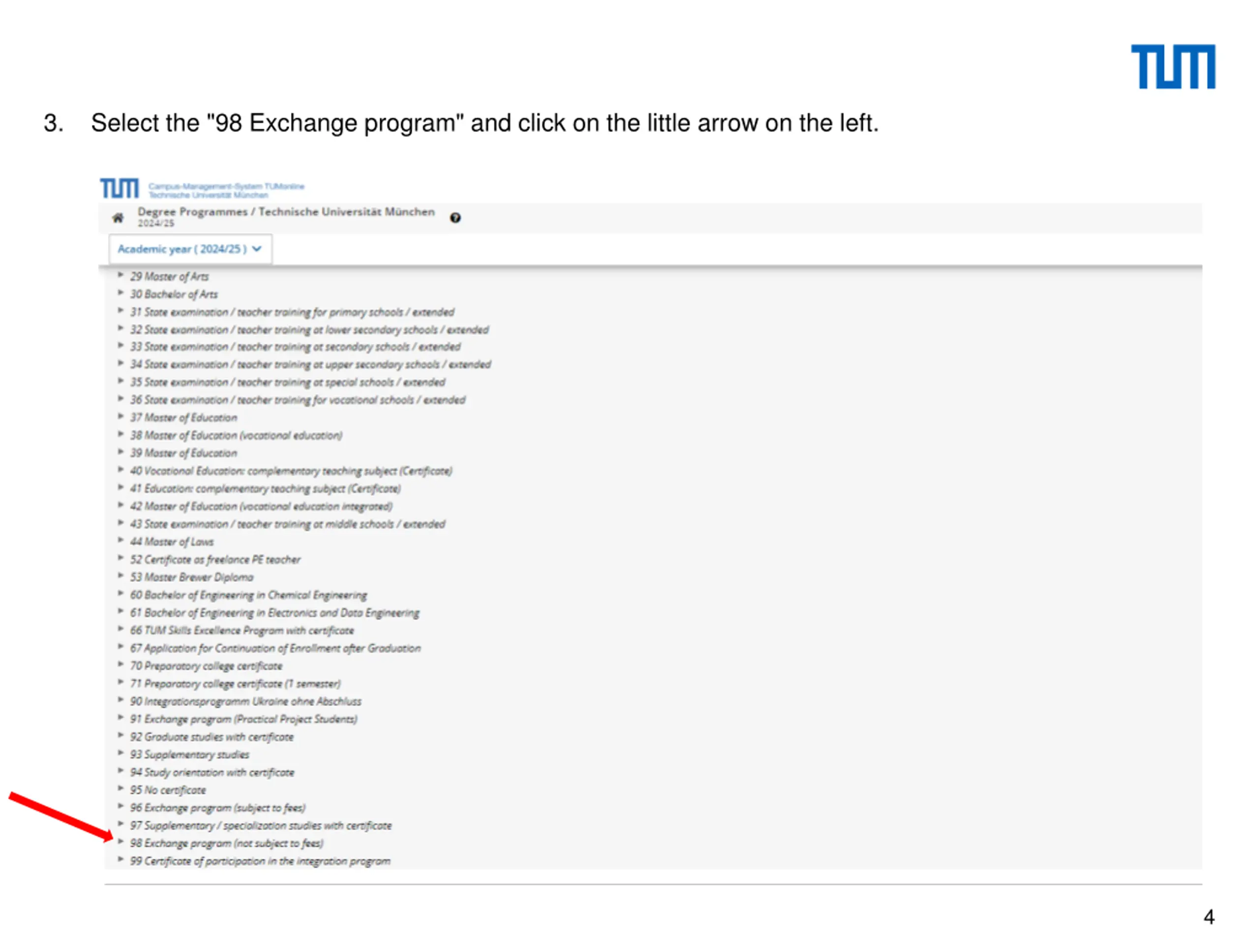 3. Select the "98 Exchange program" and click on the little arrow on the left. 4