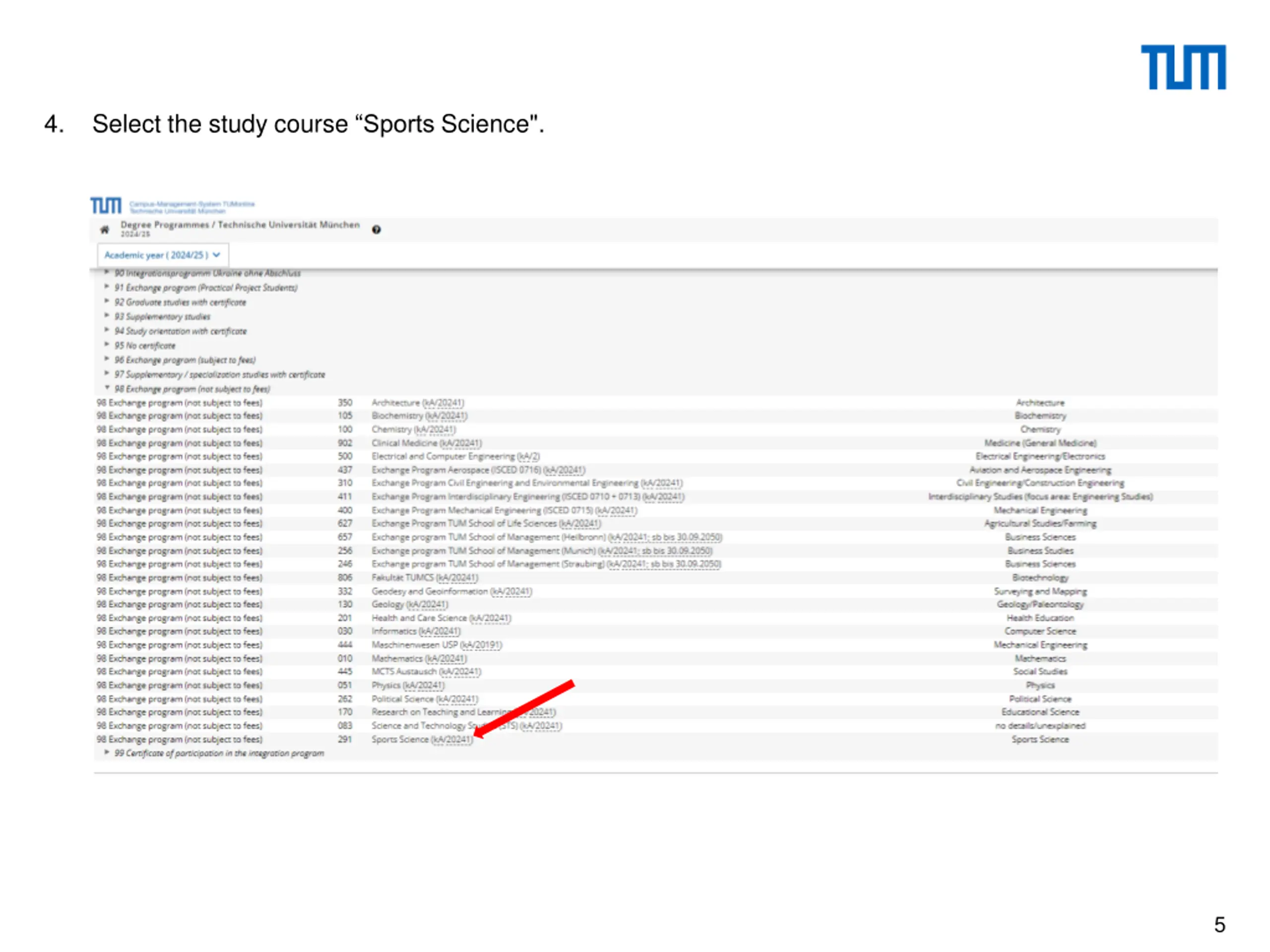 Instructions for TUMonline How to find suitable courses? Gabi Fried and Brigitta Sch chterle/ International Office Technical University Munich TUM School of Medicine and Health Department of Health and Sport Sciences Munich, 5th of September 2024 1