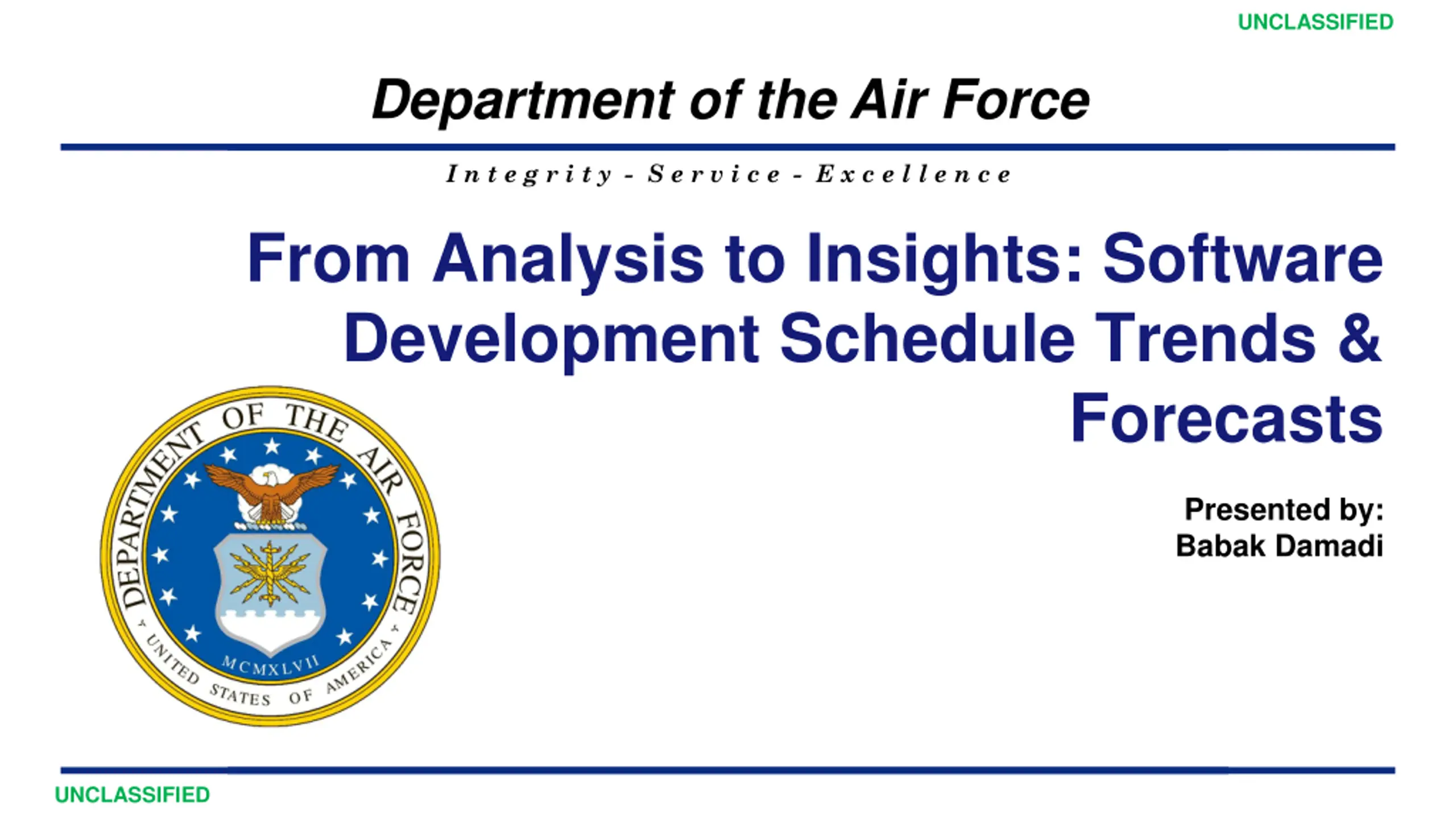 UNCLASSIFIED Department of the Air Force I n t e g r i t y - S e r v i c e - E x c e l l e n c e From Analysis to Insights: Software Development Schedule Trends & Forecasts Presented by: Babak Damadi UNCLASSIFIED