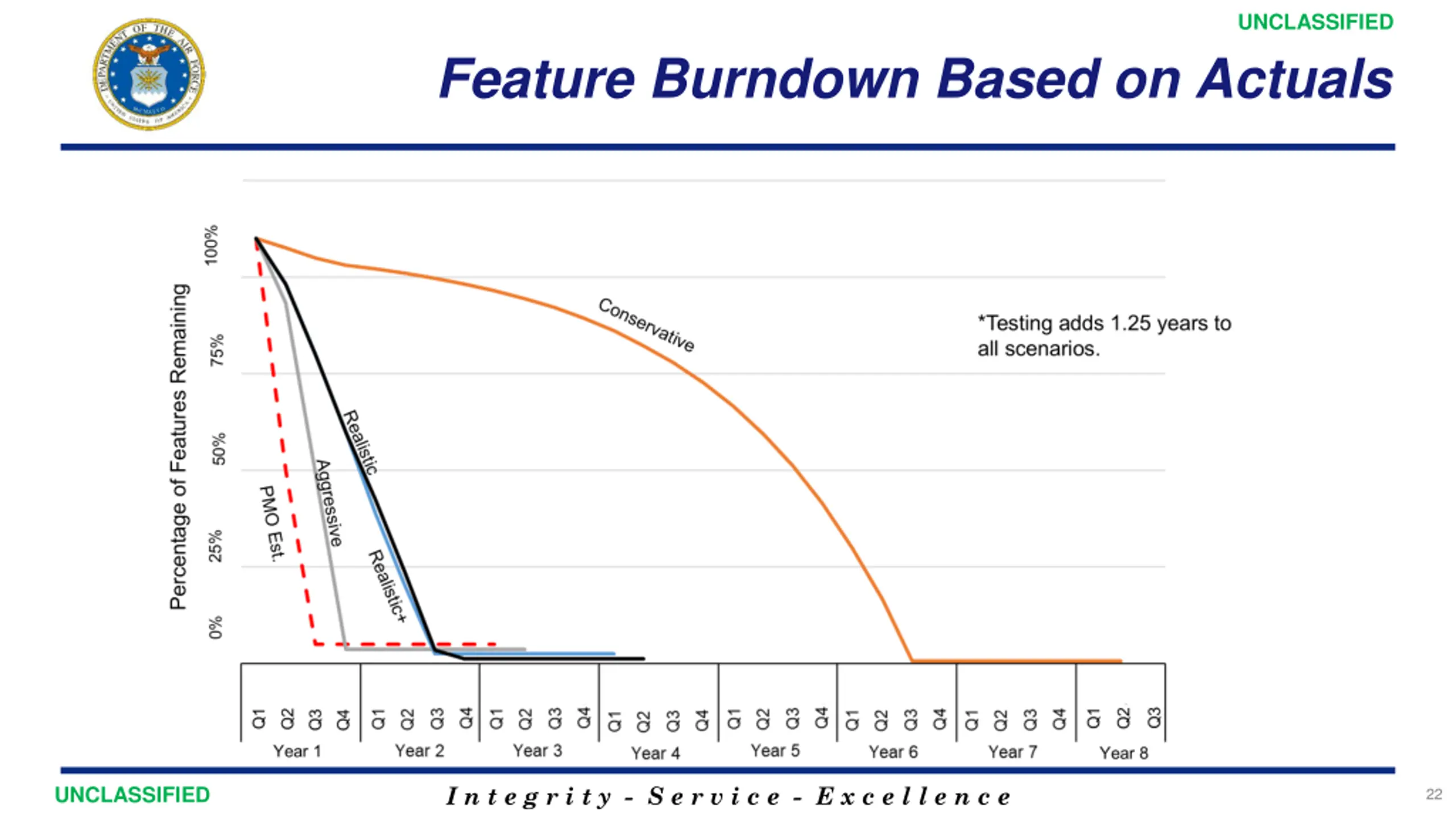 UNCLASSIFIED Feature Burndown Based on Actuals I n t e g r i t y - S e r v i c e - E x c e l l e n c e UNCLASSIFIED 22