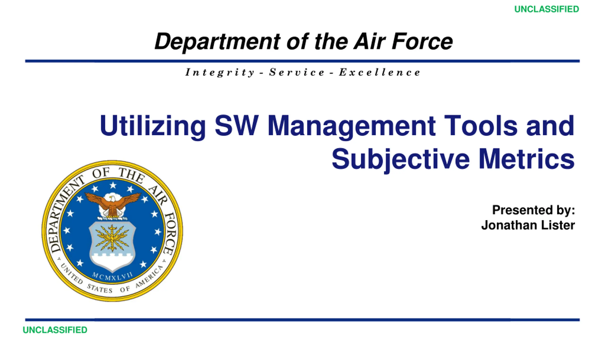 UNCLASSIFIED Department of the Air Force I n t e g r i t y - S e r v i c e - E x c e l l e n c e Utilizing SW Management Tools and Subjective Metrics Presented by: Jonathan Lister UNCLASSIFIED