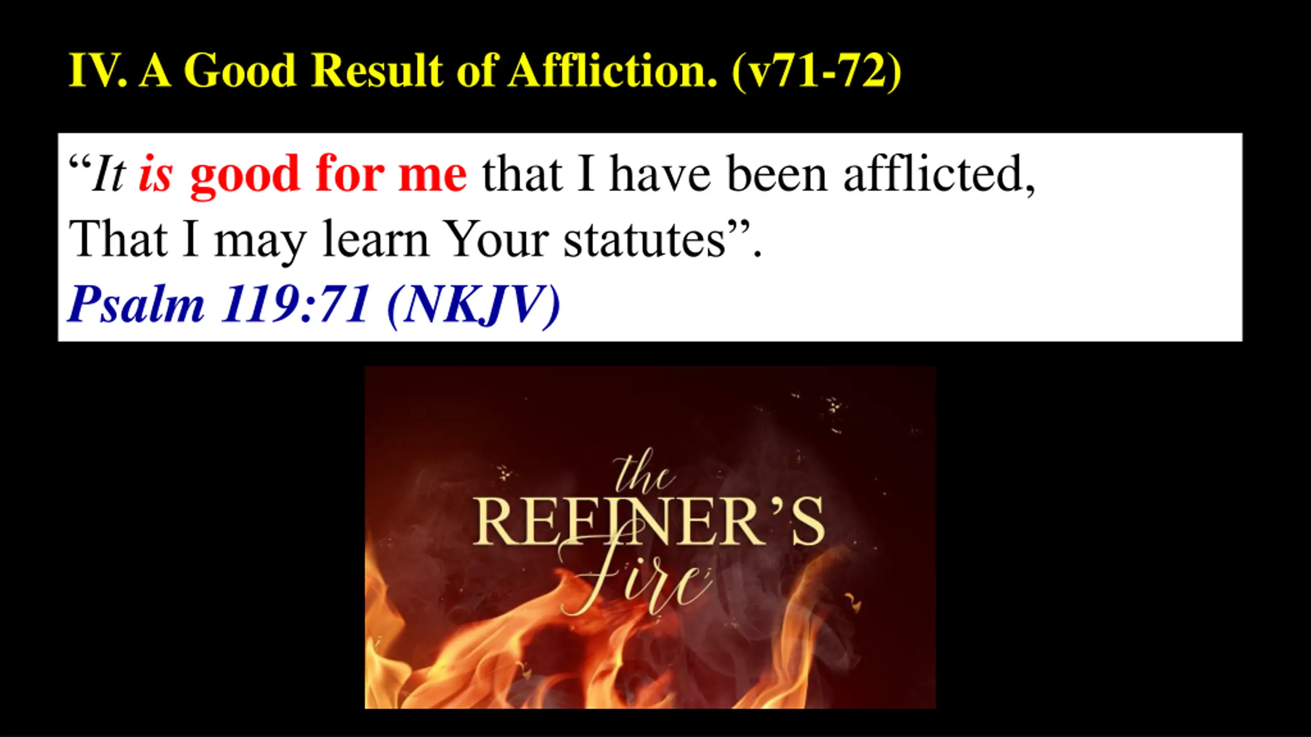 IV. A Good Result of Affliction. (v71-72) It is good for me that I have been afflicted, That I may learn Your statutes . Psalm 119:71 (NKJV)
