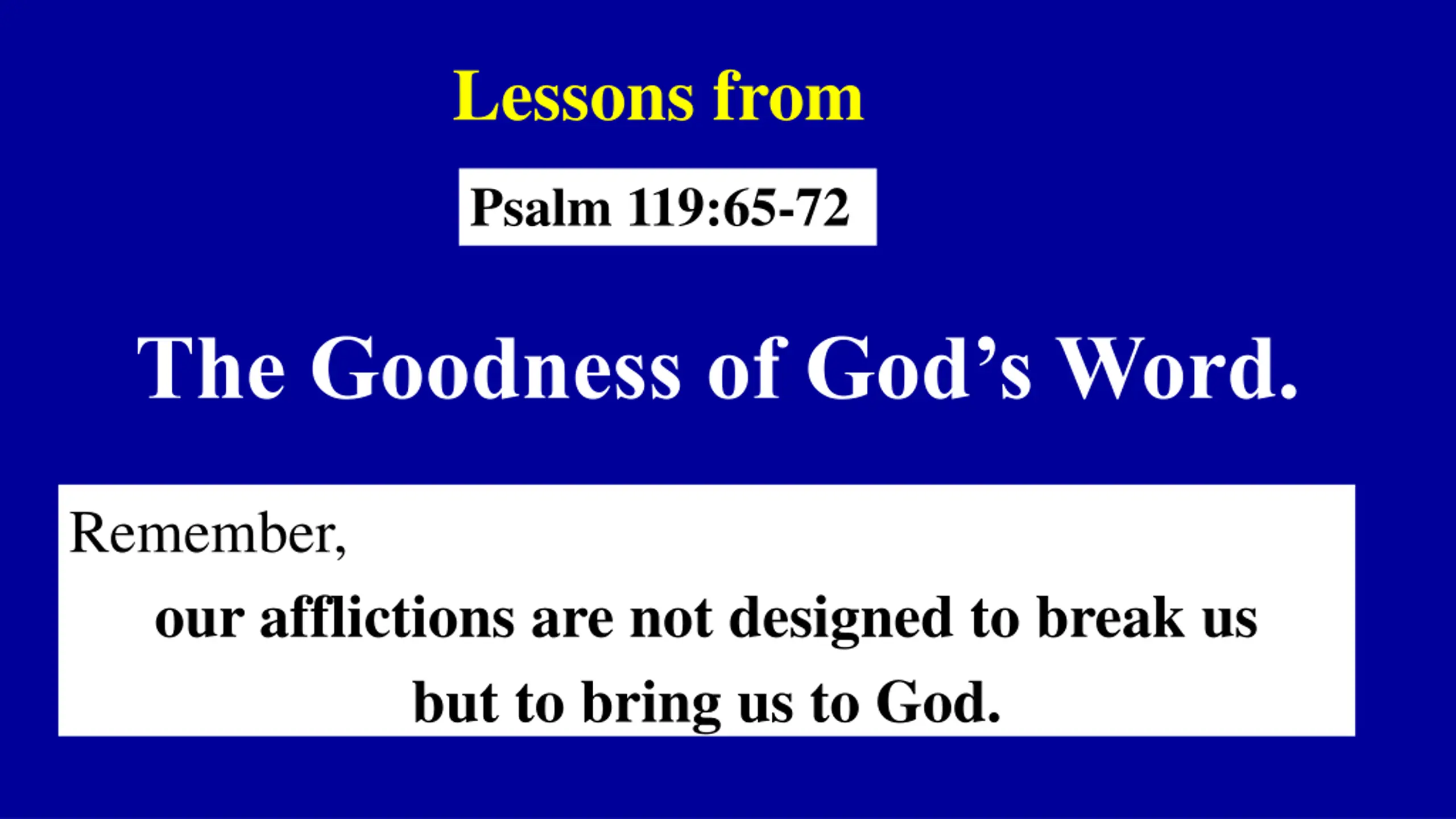 Lessons from Psalm 119:65-72 The Goodness of God s Word. Remember, our afflictions are not designed to break us but to bring us to God.