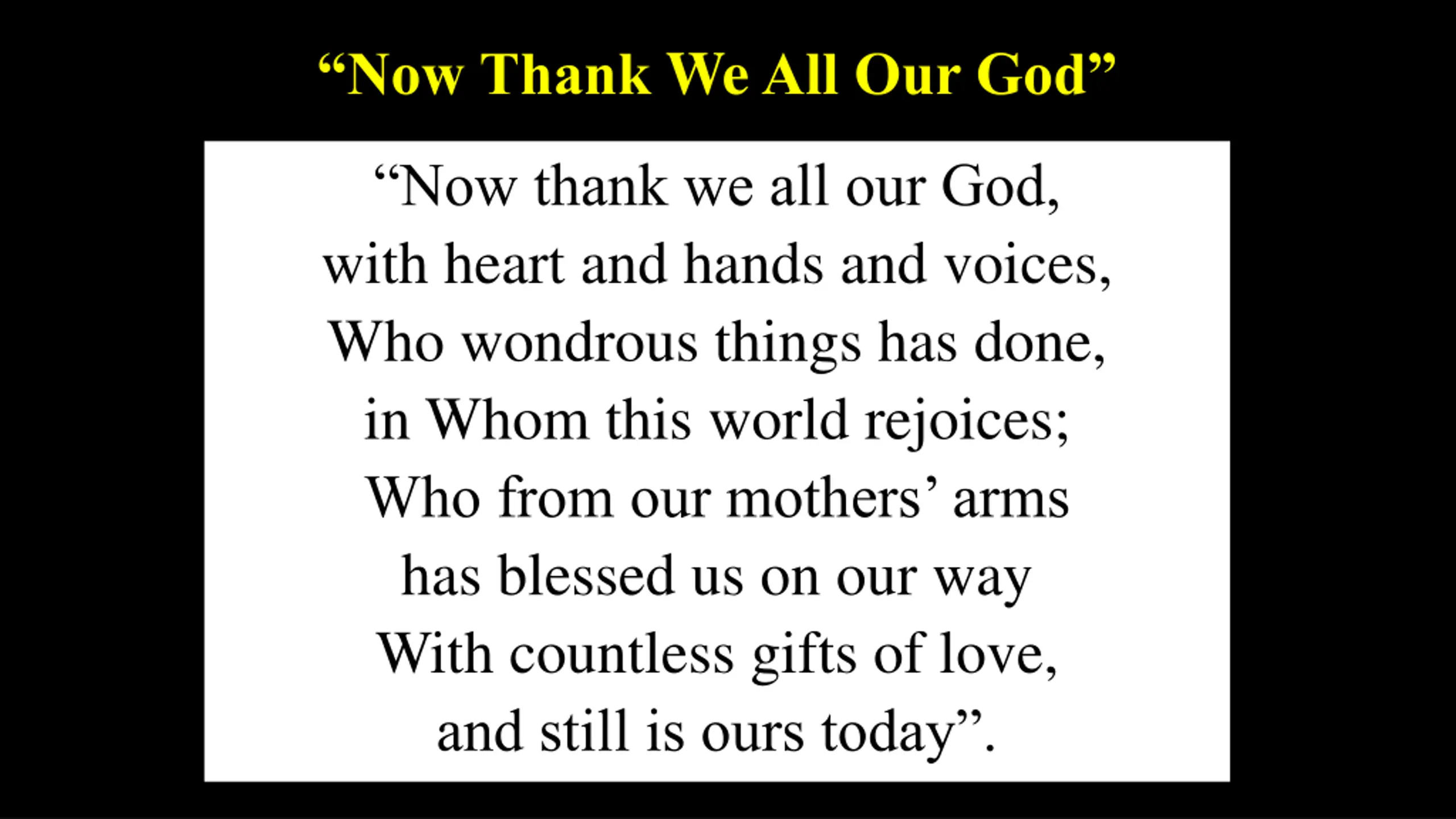 Now Thank We All Our God Now thank we all our God, with heart and hands and voices, Who wondrous things has done, in Whom this world rejoices; Who from our mothers arms has blessed us on our way With countless gifts of love, and still is ours today .