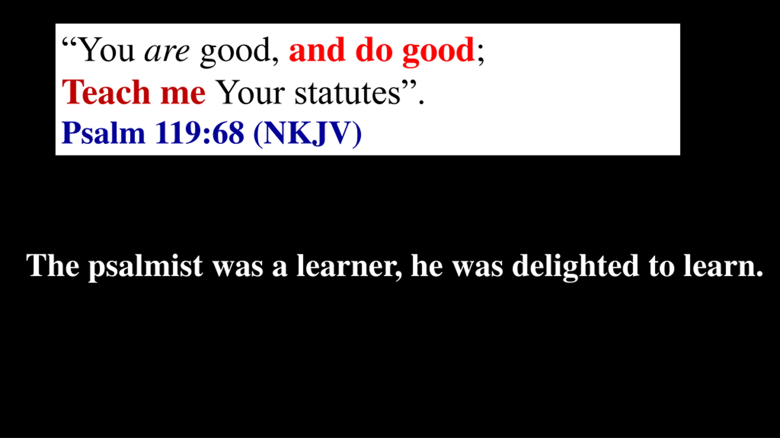 You are good, and do good; Teach me Your statutes . Psalm 119:68 (NKJV) The psalmist was a learner, he was delighted to learn.