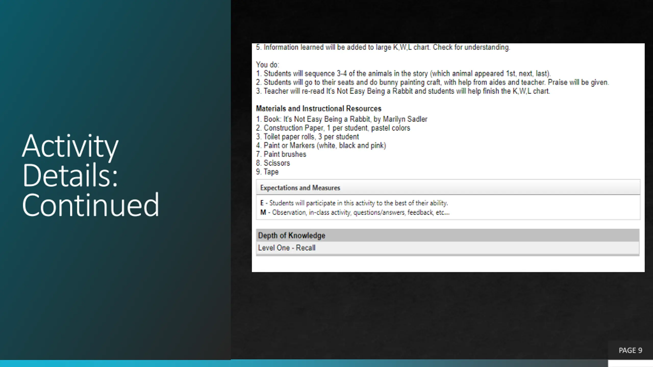 Activity Details: Continued PAGE 9