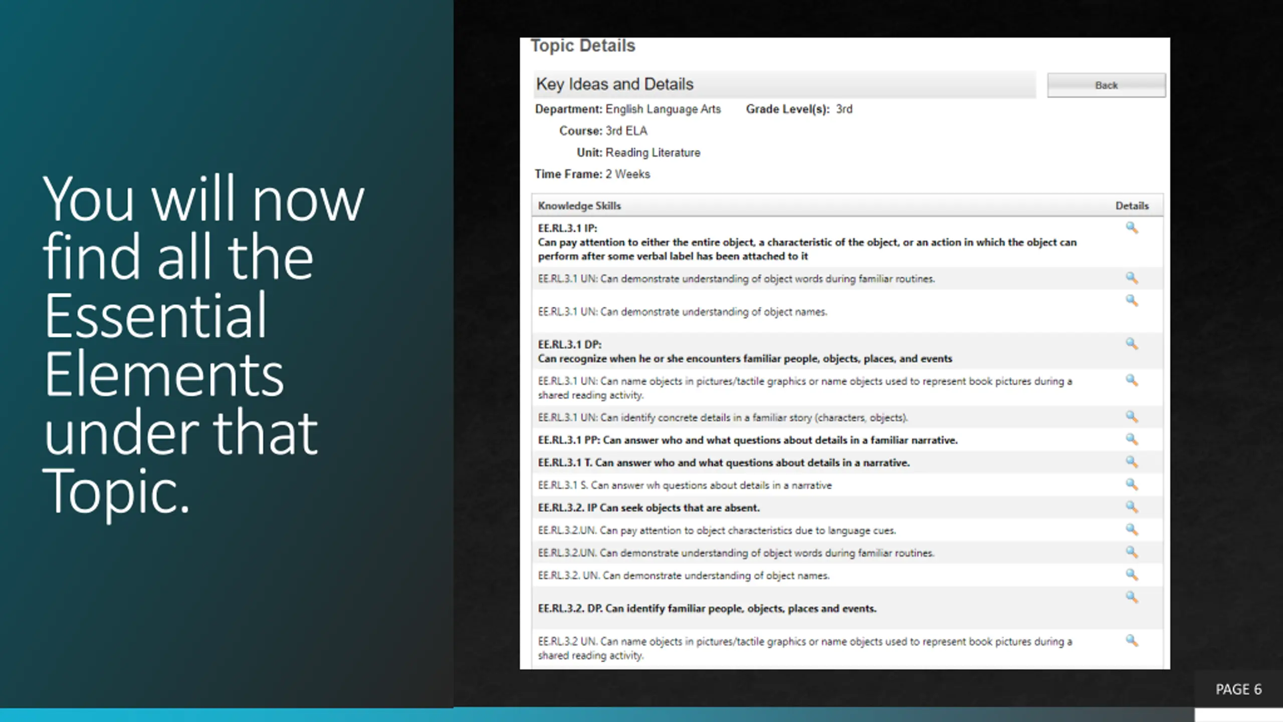 You will now find all the Essential Elements under that Topic. PAGE 6