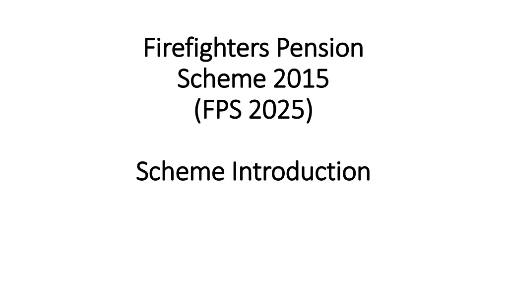 Firefighters Pension Firefighters Pension Scheme 2015 Scheme 2015 (FPS 2025) (FPS 2025) Scheme Introduction Scheme Introduction