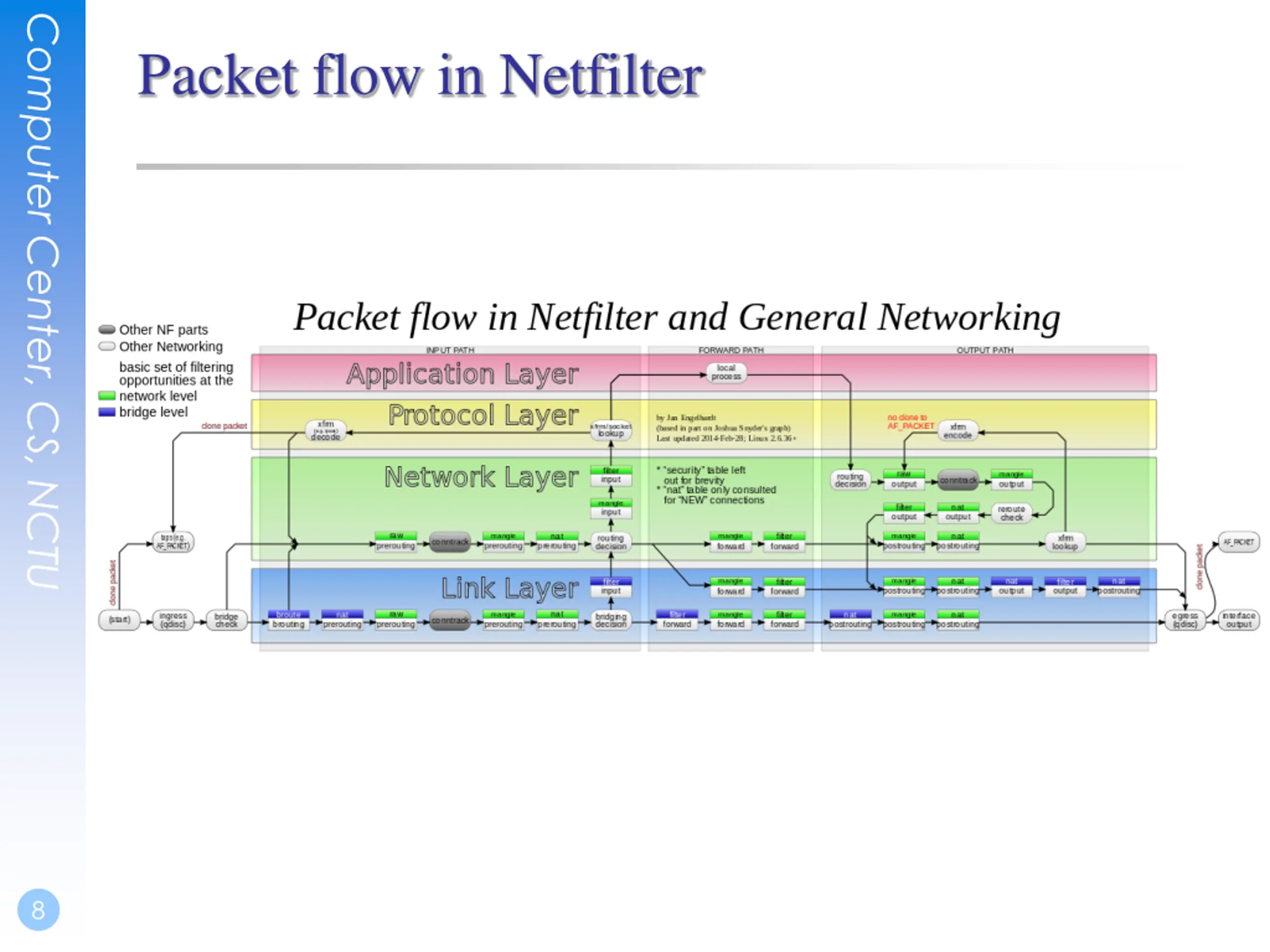 Computer Center, CS, NCTU Packet flow in Netfilter 8