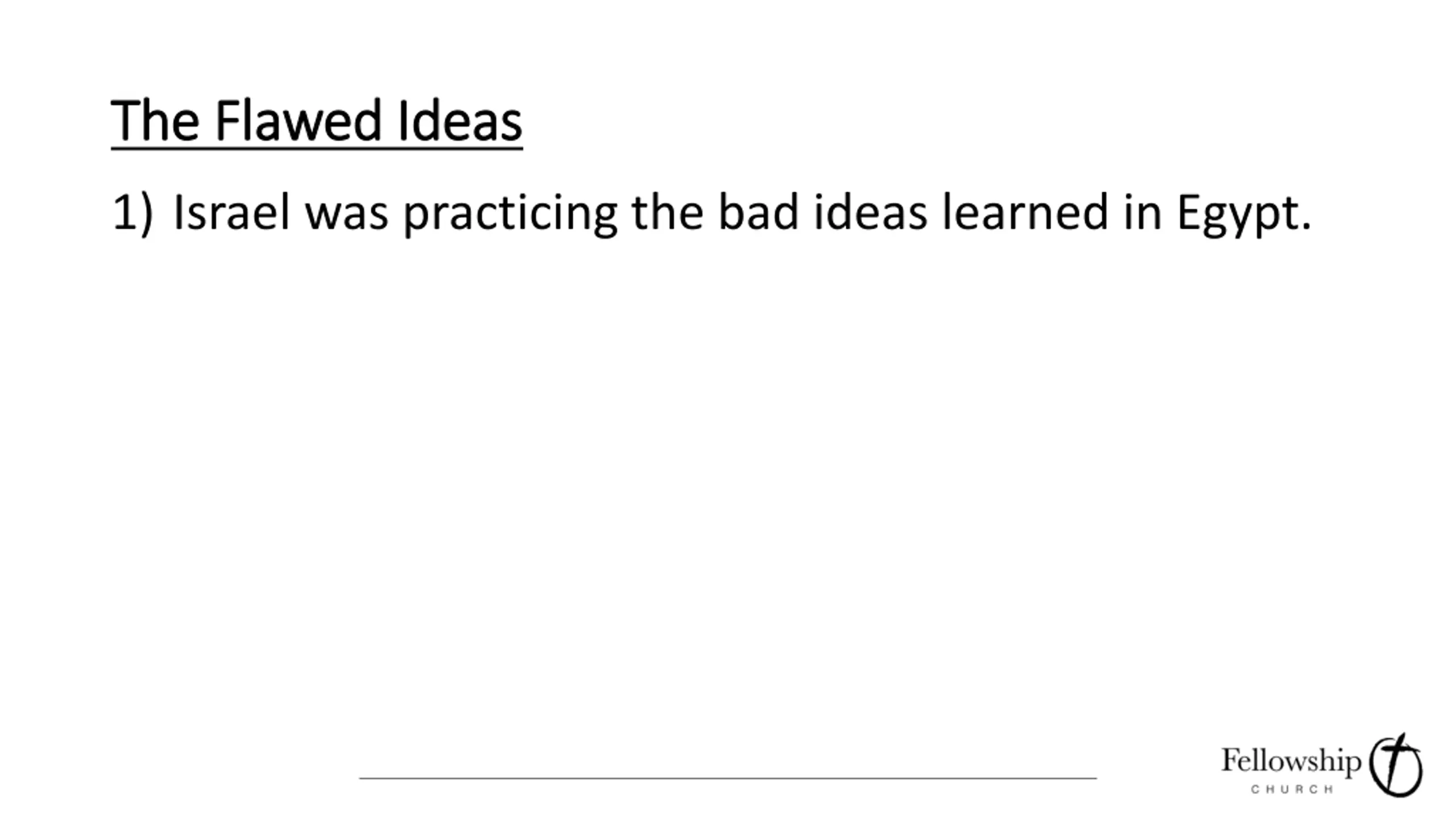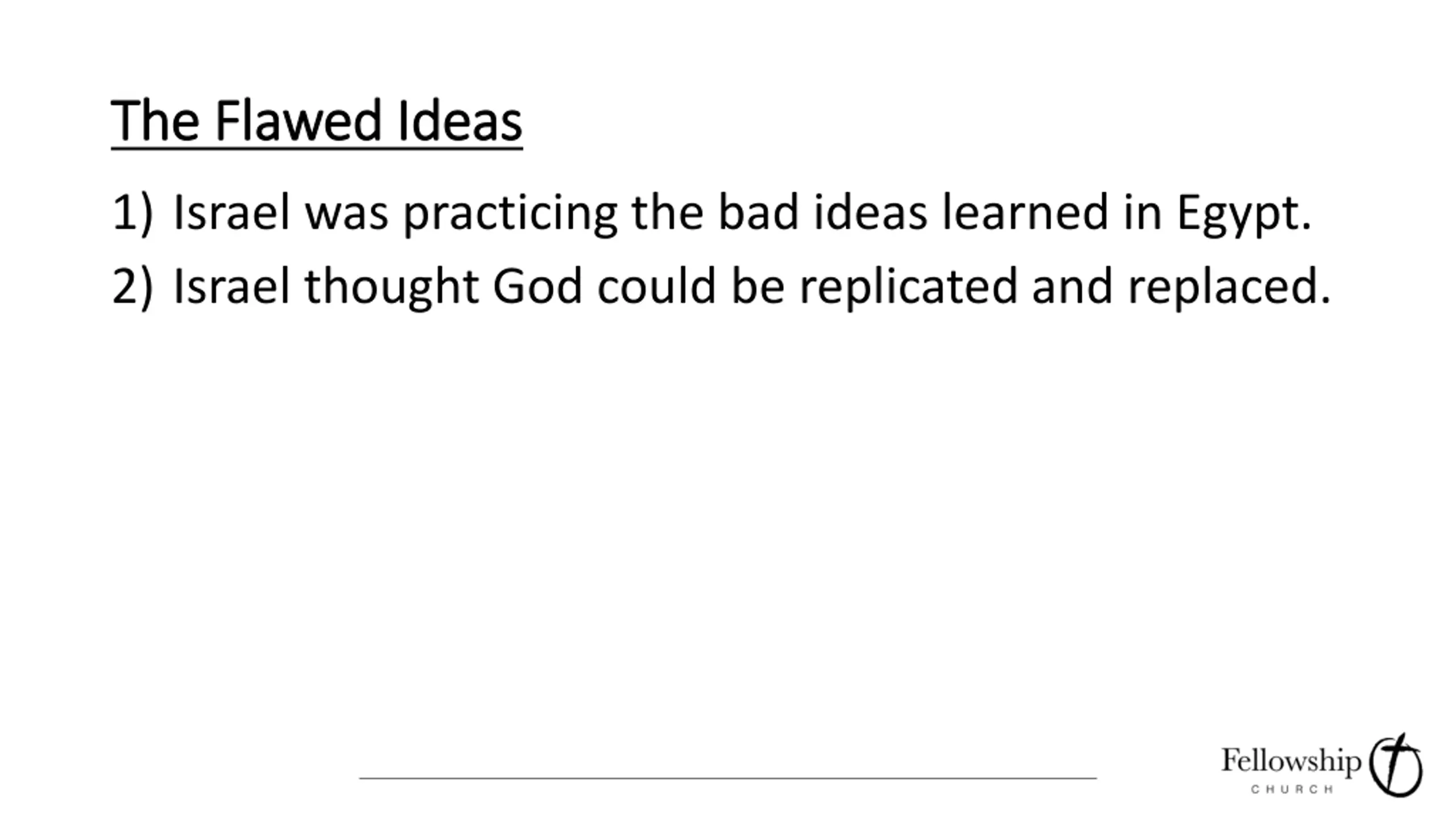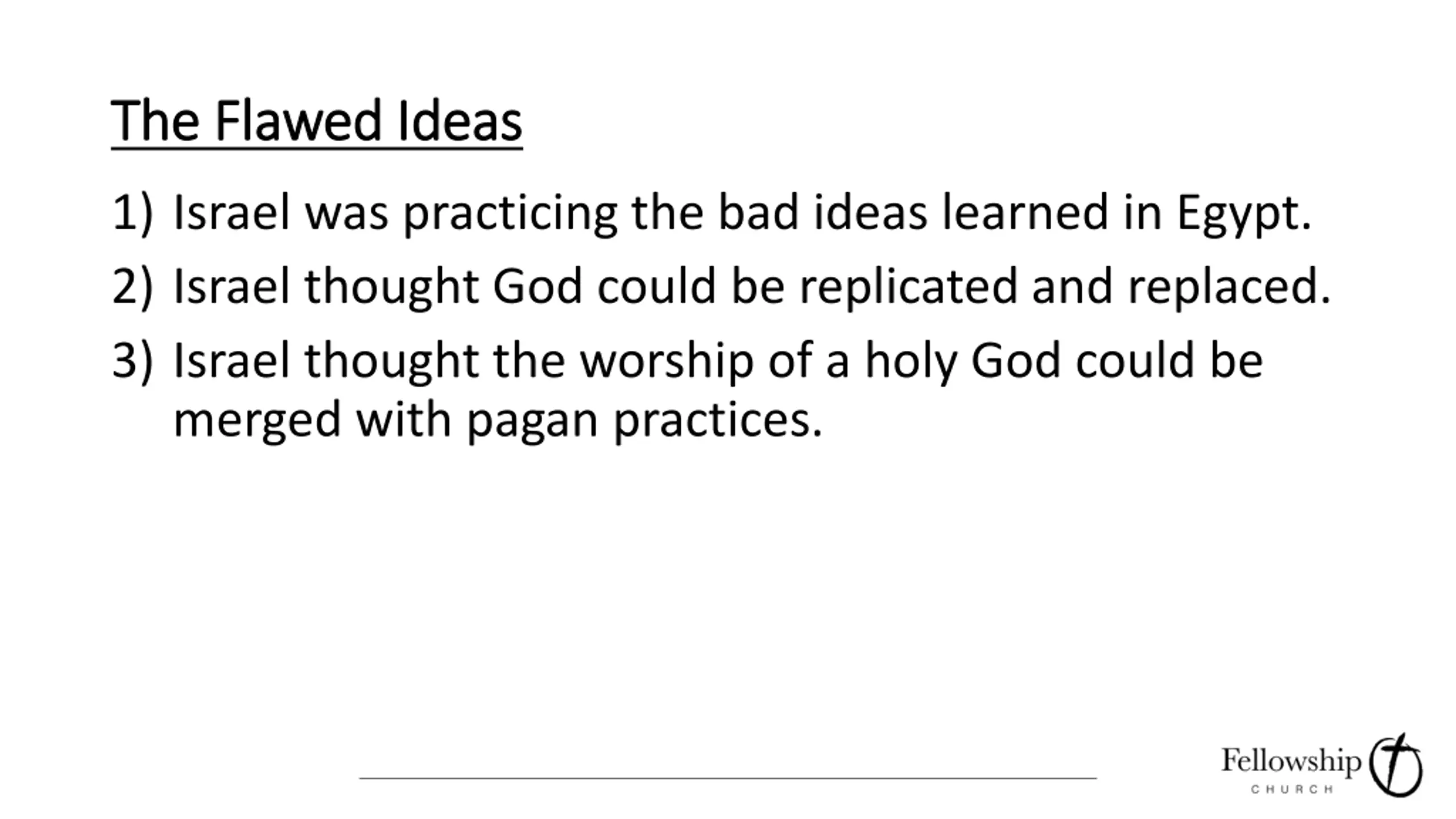 The Flawed Ideas The Flawed Ideas 1) Israel was practicing the bad ideas learned in Egypt. 2) Israel thought God could be replicated and replaced. 3) Israel thought the worship of a holy God could be merged with pagan practices.