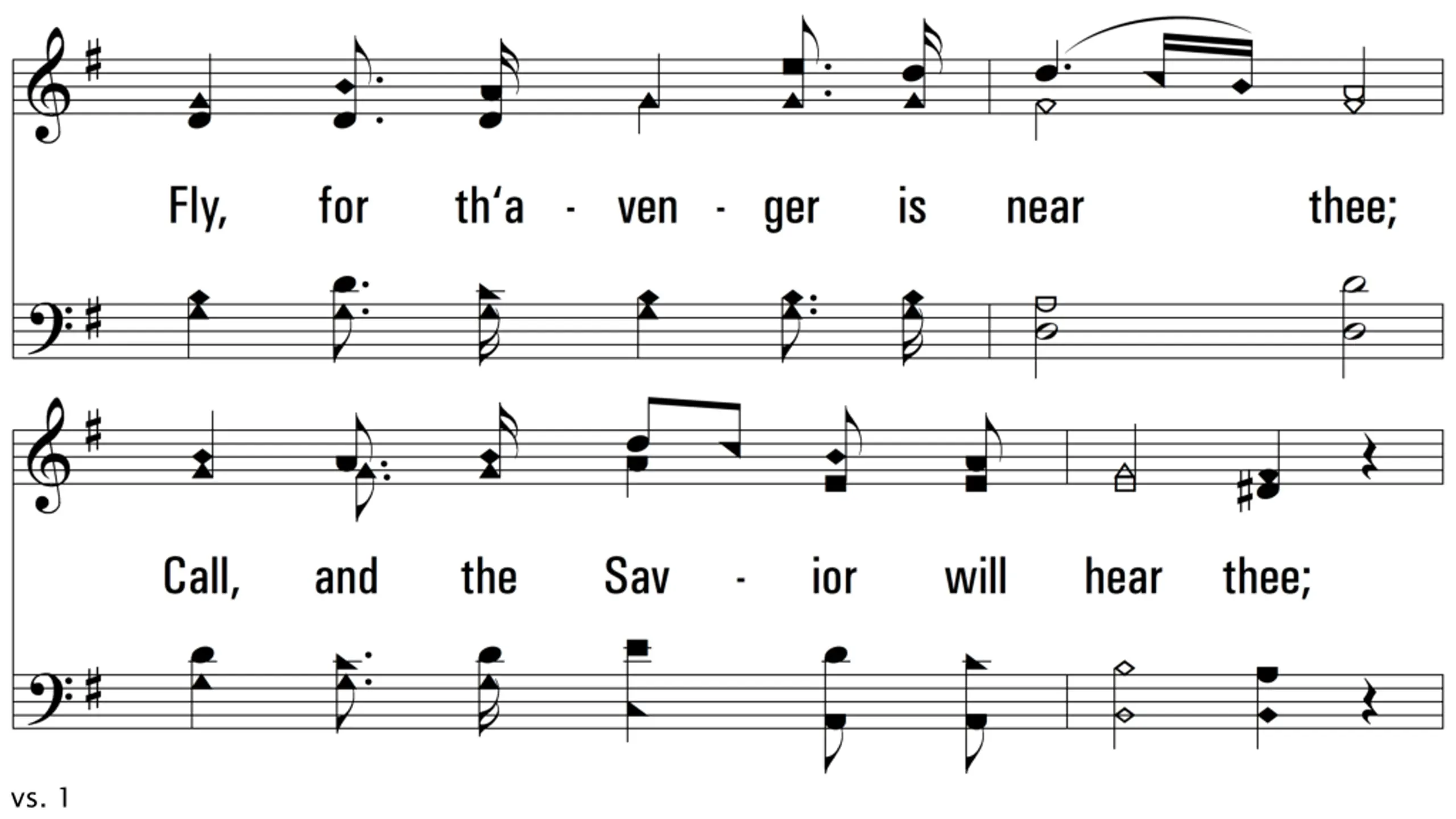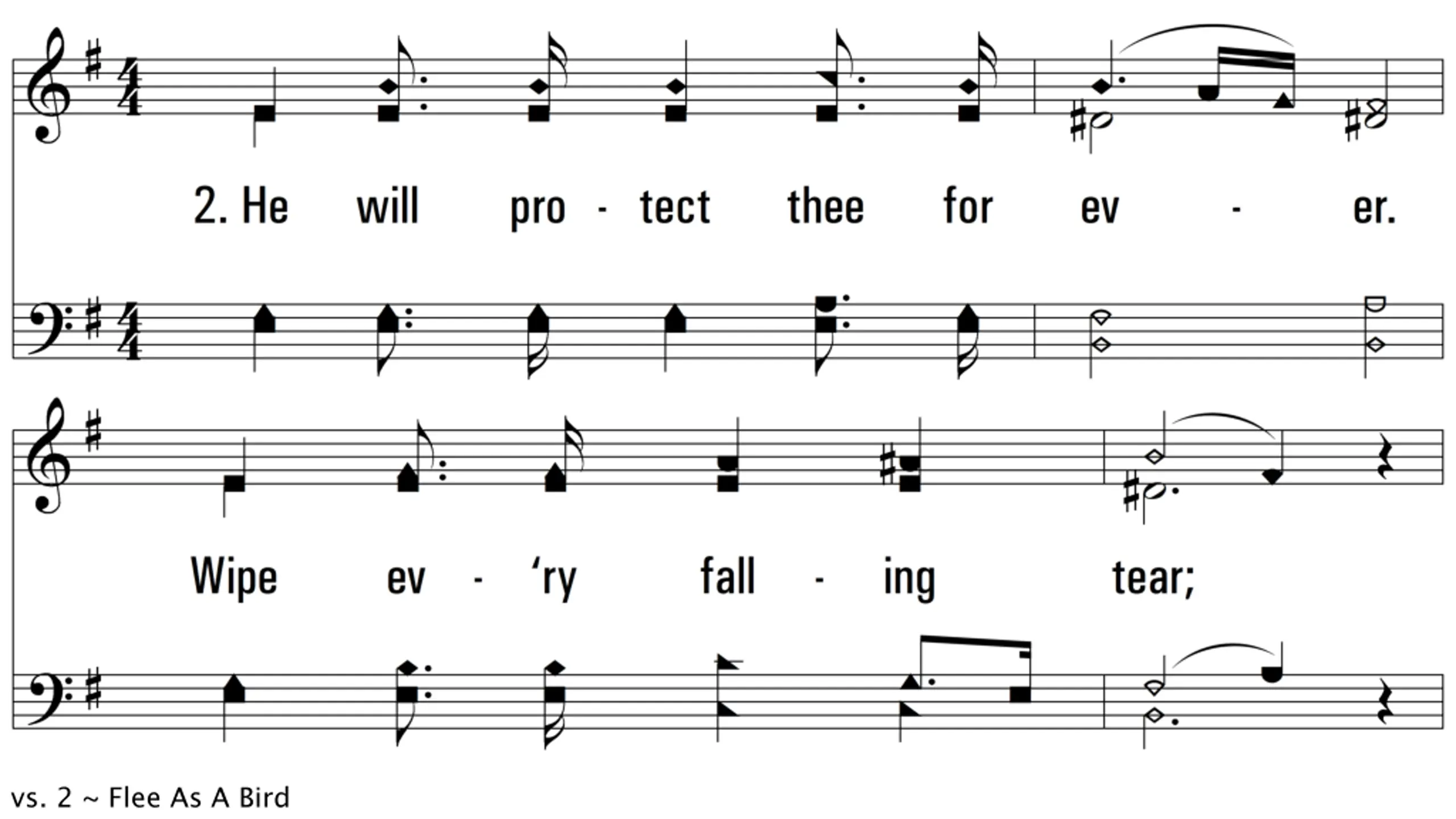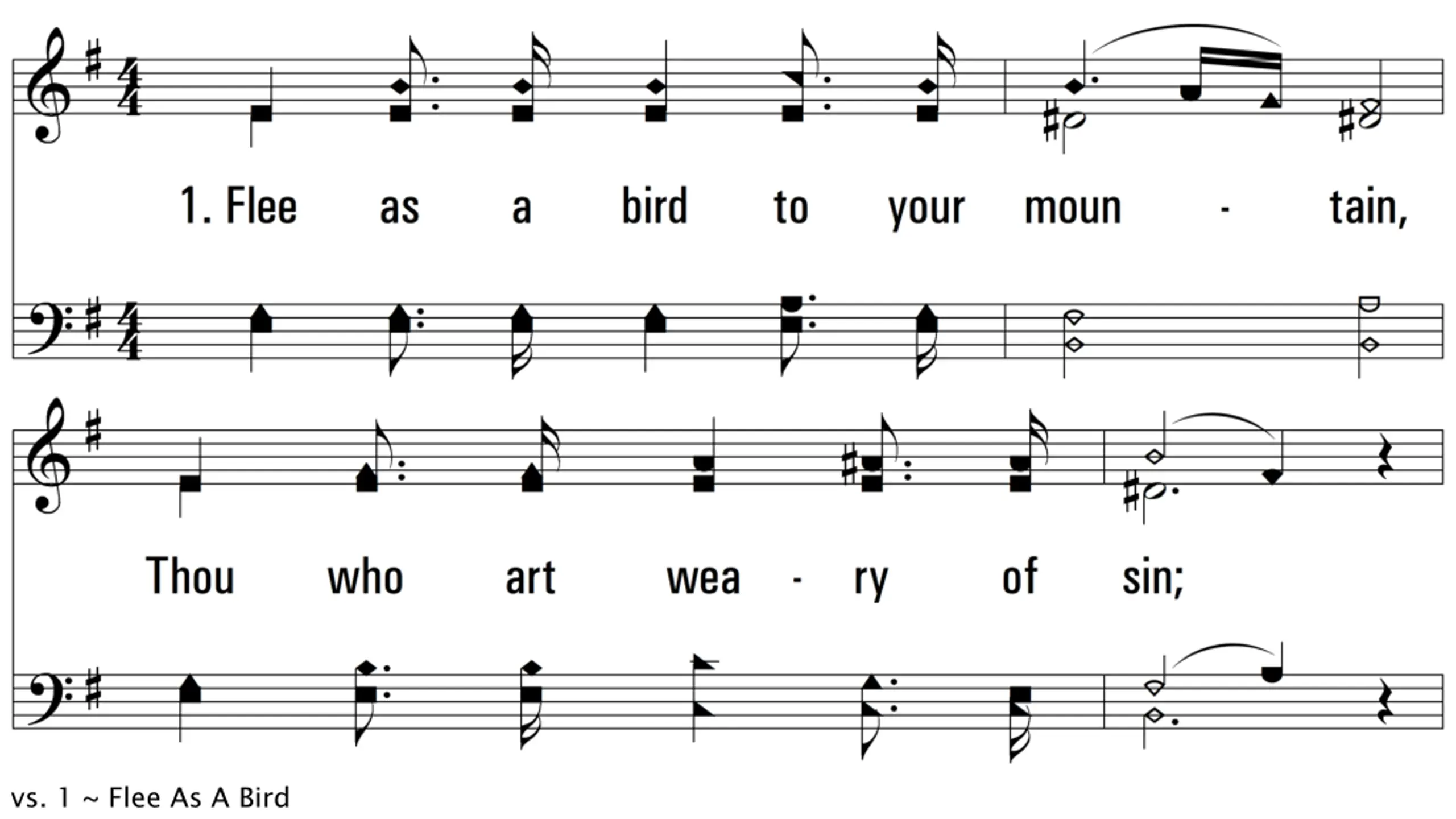 Flee As A Bird IN DOMINO CONFIDO 8.7.8.7.8.8.8.8 Words: Mary S. Dana (1842) Music: Spanish Air Lead - LA Alto - LA Tenor - DO Bass - LA 4/4 Em(G)/E - LA Verses: 2 PDHymns.com