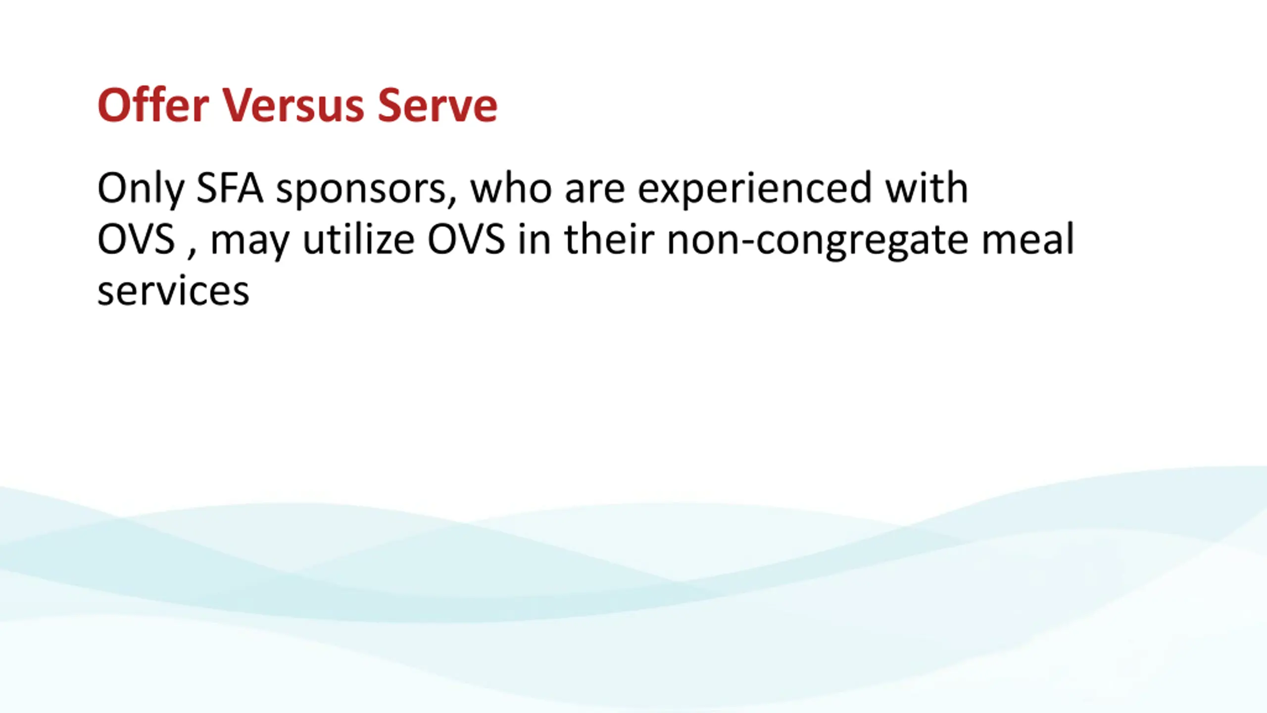 Offer Versus Serve Only SFA sponsors, who are experienced with OVS , may utilize OVS in their non-congregate meal services