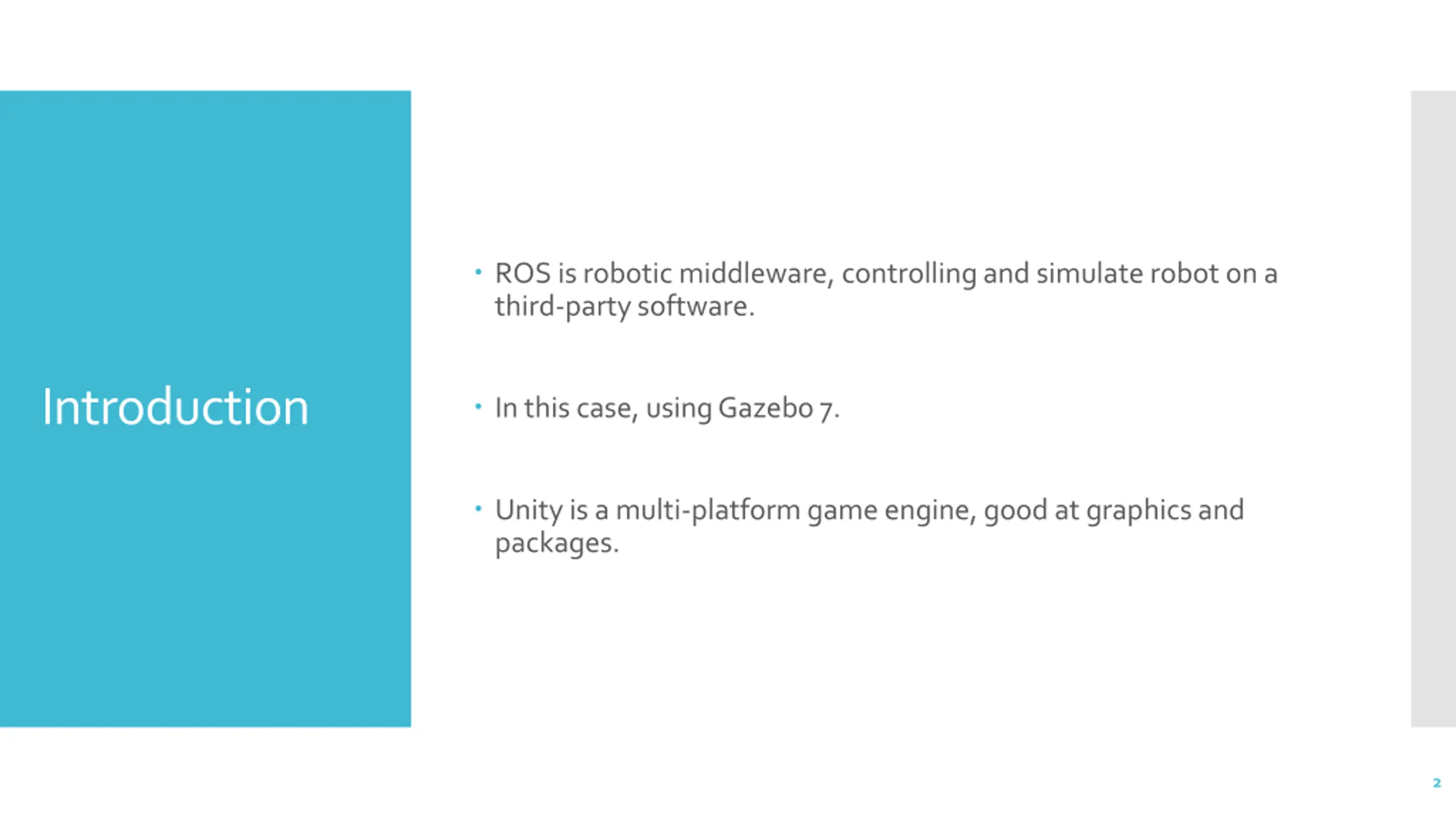 ROS is robotic middleware, controlling and simulate robot on a third-party software. Introduction In this case, using Gazebo 7. Unity is a multi-platform game engine, good at graphics and packages. 2