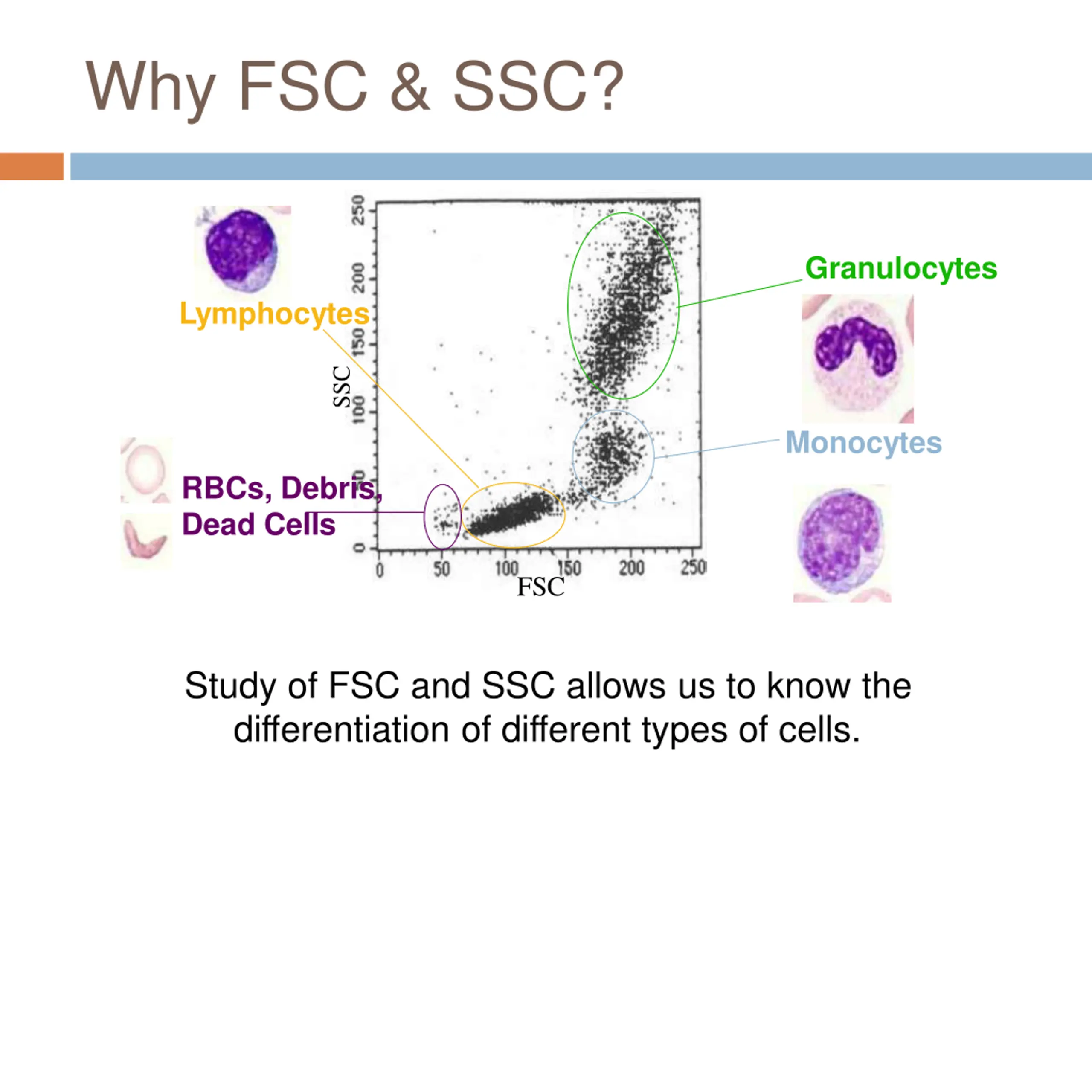 Why FSC & SSC? Granulocytes Lymphocytes SSC Monocytes RBCs, Debris, Dead Cells FSC Study of FSC and SSC allows us to know the differentiation of different types of cells.