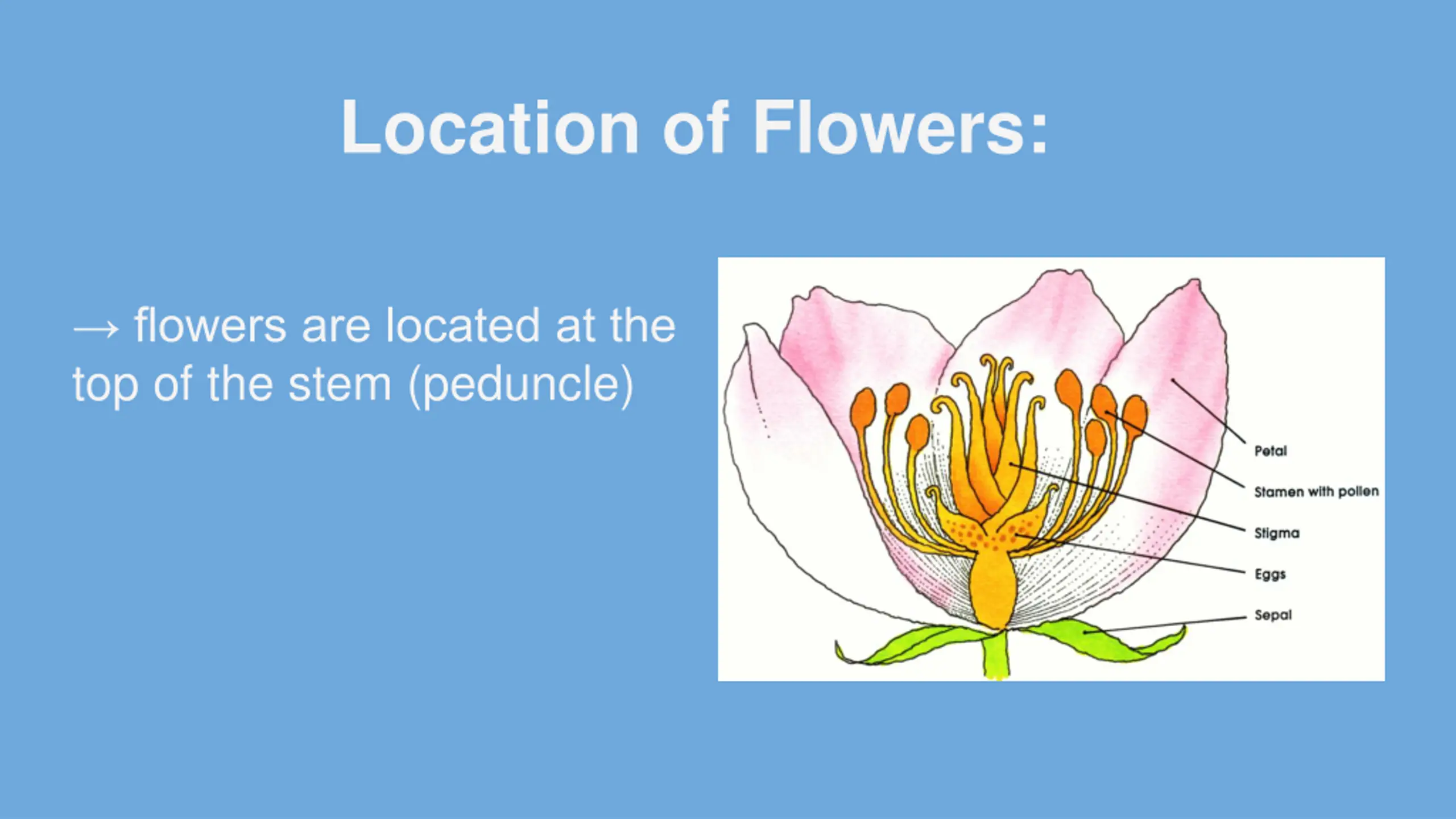 Location of Flowers: flowers are located at the top of the stem (peduncle)