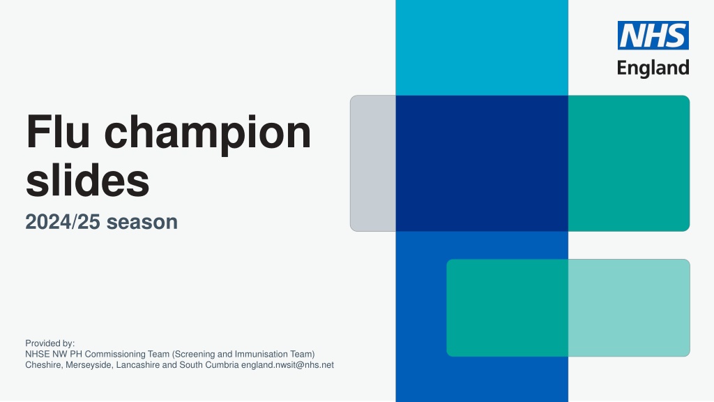 Flu champion slides 2024/25 season Provided by: NHSE NW PH Commissioning Team (Screening and Immunisation Team) Cheshire, Merseyside, Lancashire and South Cumbria england.nwsit@nhs.net
